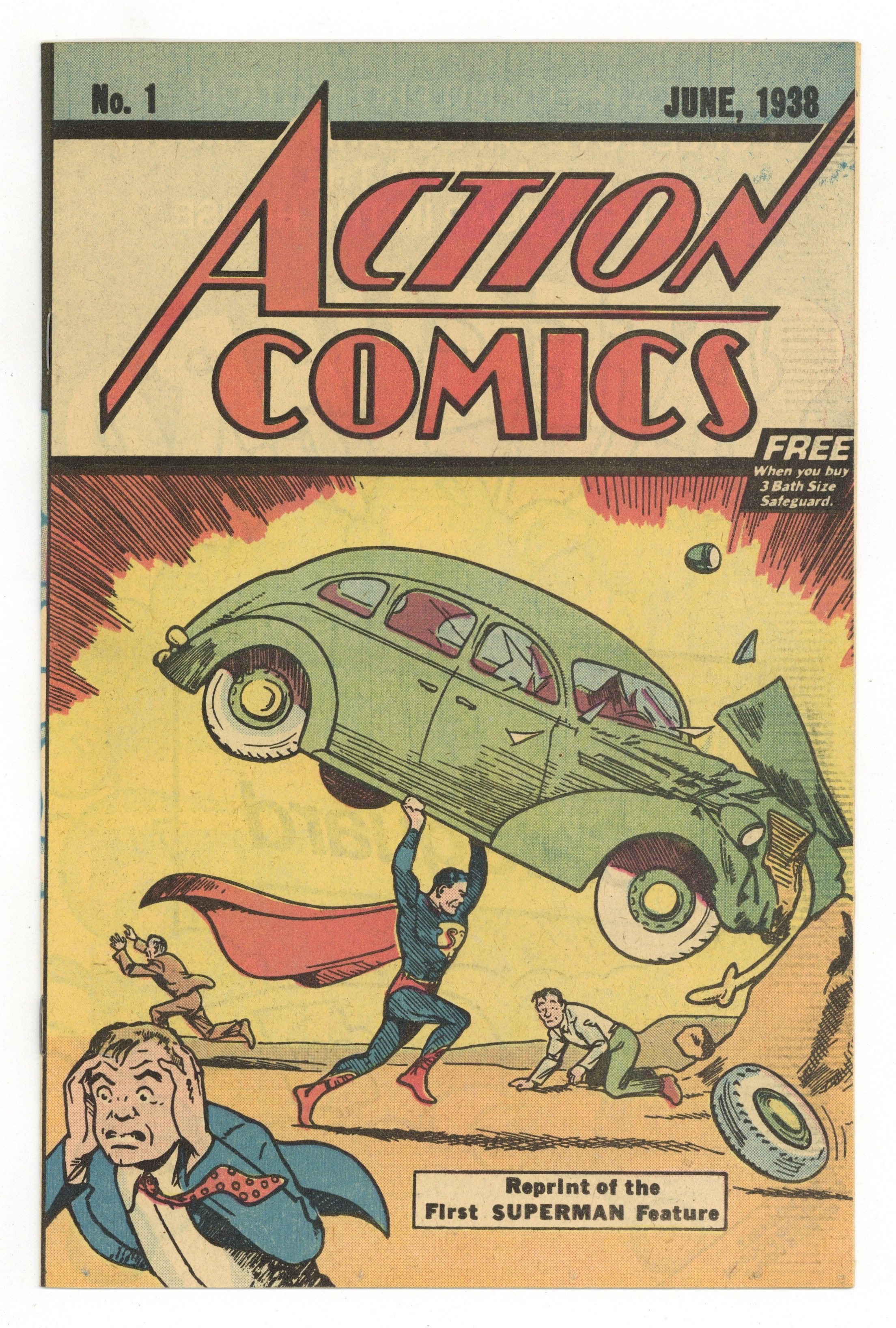 Ended Nov 24 7:03 PM CST Bid History 5 bids Winning Bid $38 16-page reprint of complete Superman story from Action Comics #1. 1976 Safeguard reprint "Free". Paper cover. Safeguard ad on back cover. Grade: VF 8.0 explanation of grade Condition: Used (collectible)