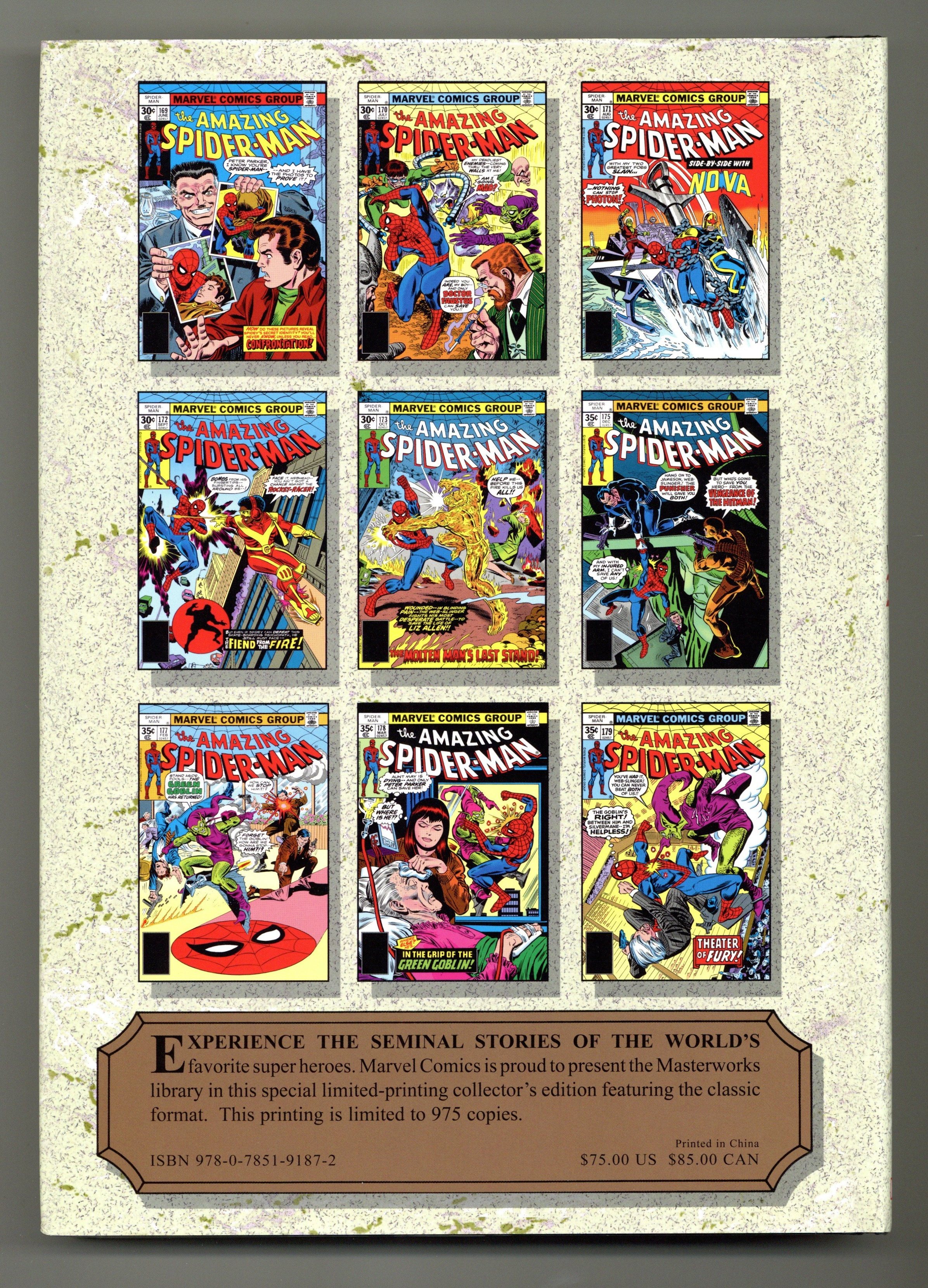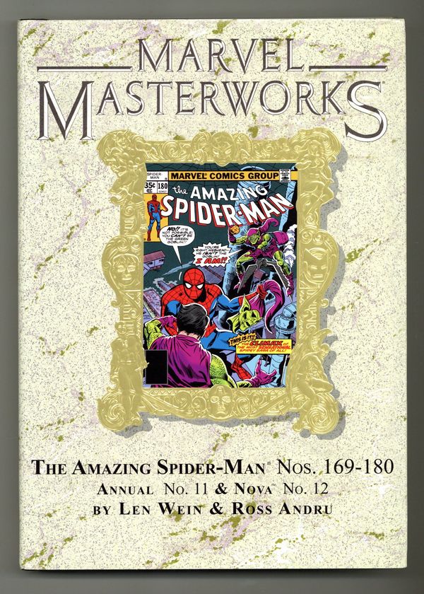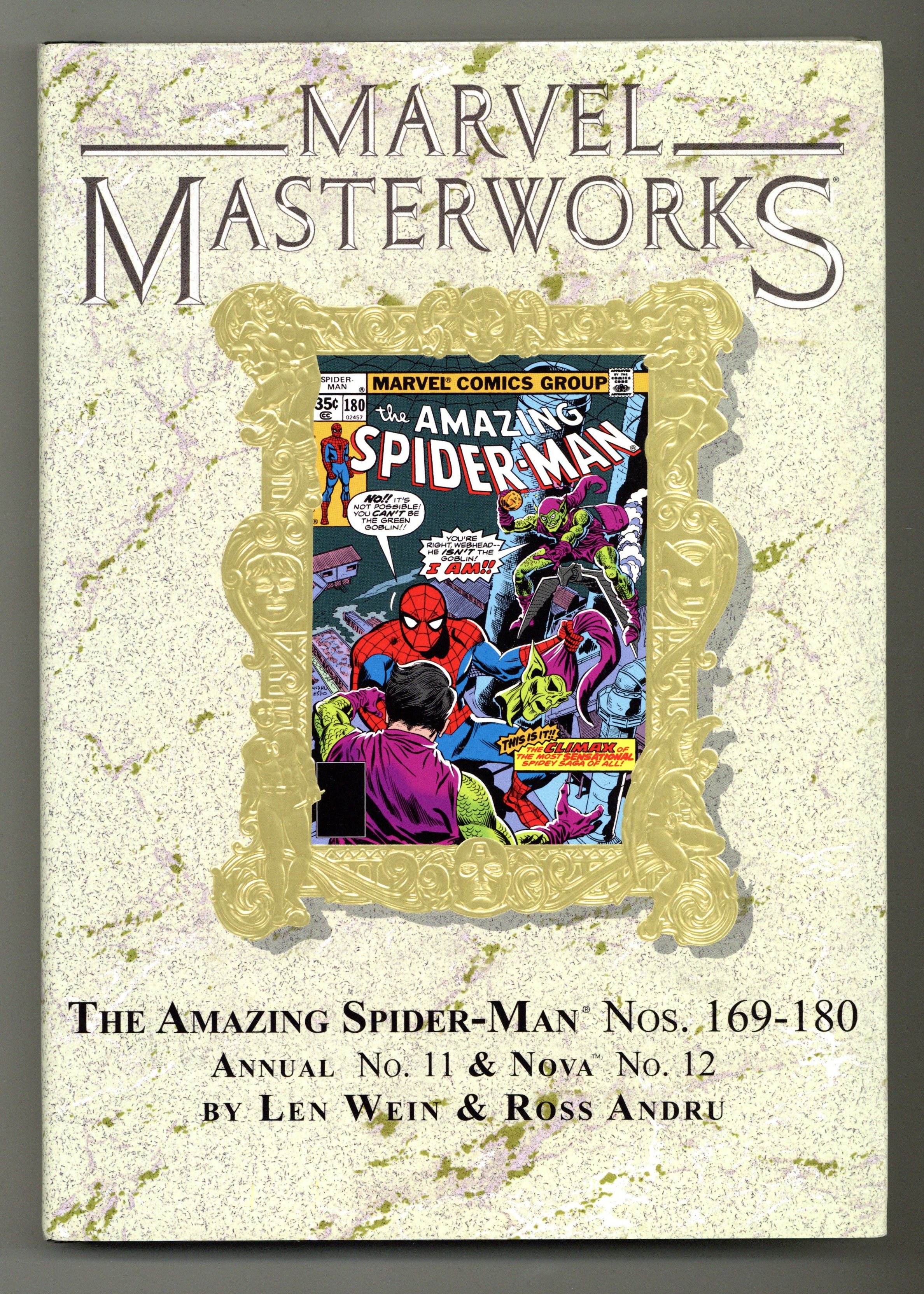 Volume 226 - 1st printing. "Amazing Spider-Man: Book 17!" Collects AMAZING SPIDER-MAN (1963-1998 1ST SERIES)#169-180 and ANNUAL #11, Nova (1976-1979 1st Series) #12, and material from Marvel Treasury Edition (1974-1981) #14. Cover by Ross Andru. J. Jonah Jameson has Peter Parker pegged as Spider-Man. Doctor Faustus is set to drive our hero insane. The Molten Man is back. The Punisher is back in town. And that's just the warmup for the return of the Green Goblin in the conclusion of Len Wein's celebrated AMAZING SPIDER-MAN run! When the Goblin strikes, all bets are off. Spider-Man's secret identity, the lives of Aunt May and Mary Jane - everything is on the line in the five-issue epic that will have you turning pages like there's no tomorrow! Also featuring a team-up with Nova, the first appearance of Rocket Racer, the return of the crime boss Silvermane, and an Annual adventure with more spiders than men! Hardcover, 288 pages, full color. NOTE: Limited to 975 copies. Cover price $75.00. Grade: VF/NM 9.0 explanation of grade Condition: Used (collectible)