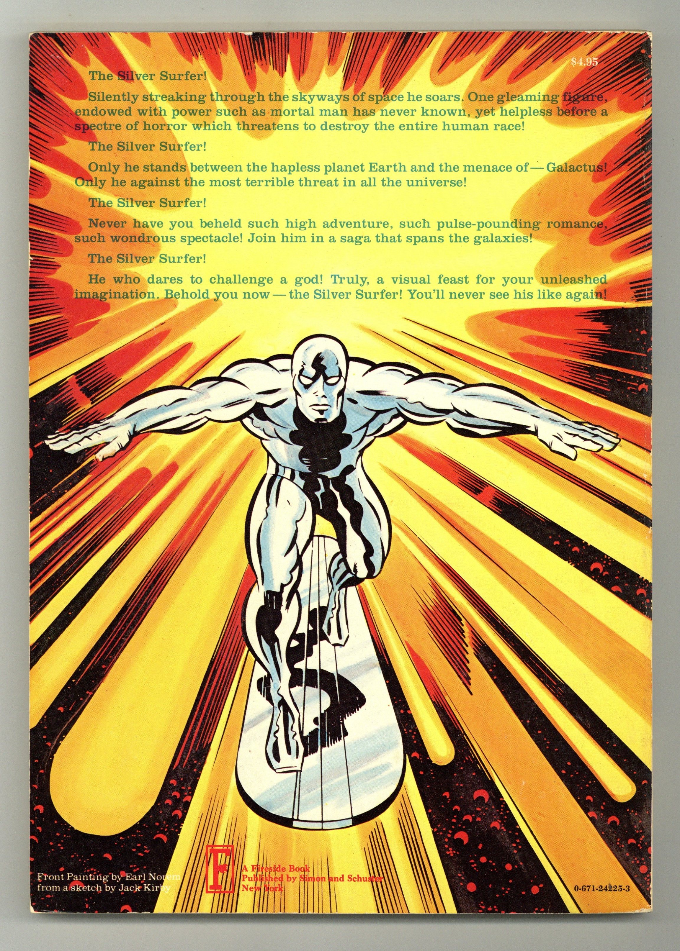 1st printing. Written by Stan Lee. Art by Jack Kirby. Painted cover by Earl Norem (based on sketch by Jack Kirby). The Silver Surfer is the only thing standing in the way of Earth and total annihilation at the hands of Galactus. Softcover, 130 pages, full color. This graphic novel marks the last collaboration between the architects of the Marvel Universe and the godfathers of Modern Day Comics - Stan Lee and Jack Kirby. Cover price $4.95. Grade: FN+ 6.5 explanation of grade Condition: Used (collectible)