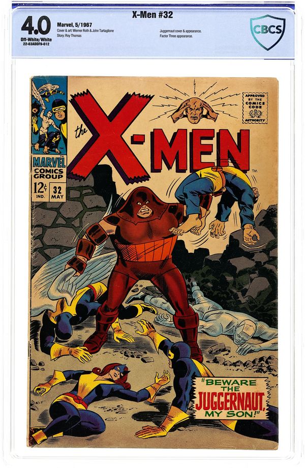 Ended Dec 1 10:04 PM CST Bid History 19 bids Winning Bid $67 Cover pencils by Jack Kirby (layouts) and Werner Roth, inks by John Tartaglione. Beware the Juggernaut, My Son!, script by Roy Thomas, pencils by Werner Roth, inks by John Tartaglione; the X-Men attend Icemans 18th birthday party; Xavier works on Juggernaut, who is unconscious in the basement of the mansion. Ad for The Merry Marvel Marching Society. 36 pgs. $0.12. Cover price $0.12. Grade: CBCS 4.0 explanation of grade Condition: Used (collectible)