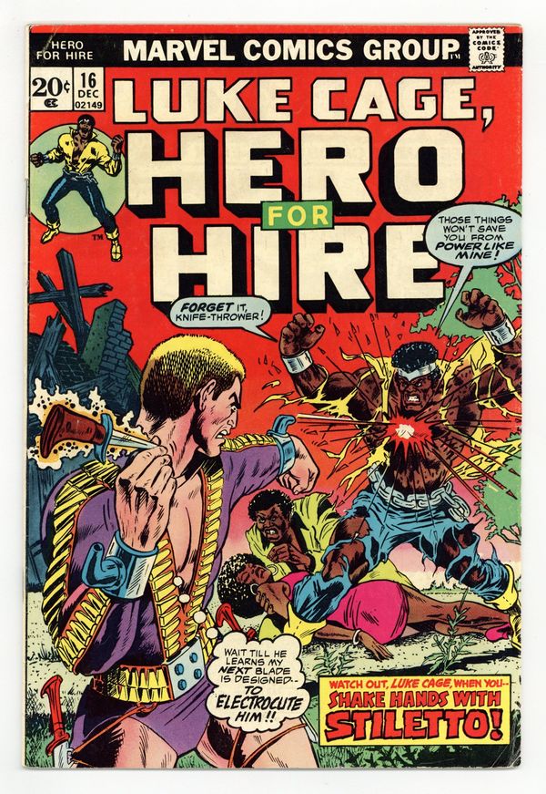 Starts Dec 15 "Shake Hands with Stiletto!" Part 3 of 3. Story by Tony Isabella. Art by Billy Graham and Frank McLaughlin. In his quest to clear Claire's name, Luke Cage crosses paths with the deadly assassin known as Stiletto. NOTE: Last issue to be titled Luke Cage, Hero for Hire. Cover price $0.20. Grade: VG+ 4.5 explanation of grade Condition: Used (collectible)