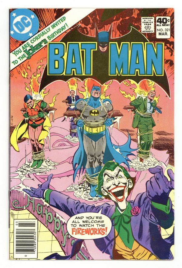 Starts Feb 2 Cover by Jose Luis Garcia-Lopez. "Dreadful Birthday, Dear Joker...!", script by Len Wein, pencils by Walt Simonson, inks by Dick Giordano; The Joker celebrates his birthday by rounding up his enemies from all around town, including Robin, James Gordon, Selina Kyle, and Alfred Pennyworth; The Joker, after his plan is foiled, escapes on a speed boat. Hostess snack cakes ad starring Hawkman. Answer Man DC questions and answers by Bob Rozakis. Man-Bat parody strip by Fred Hembeck. 36 Pages, Full Color. Cover price $0.40. Grade: FN+ 6.5 explanation of grade Condition: Used (collectible)