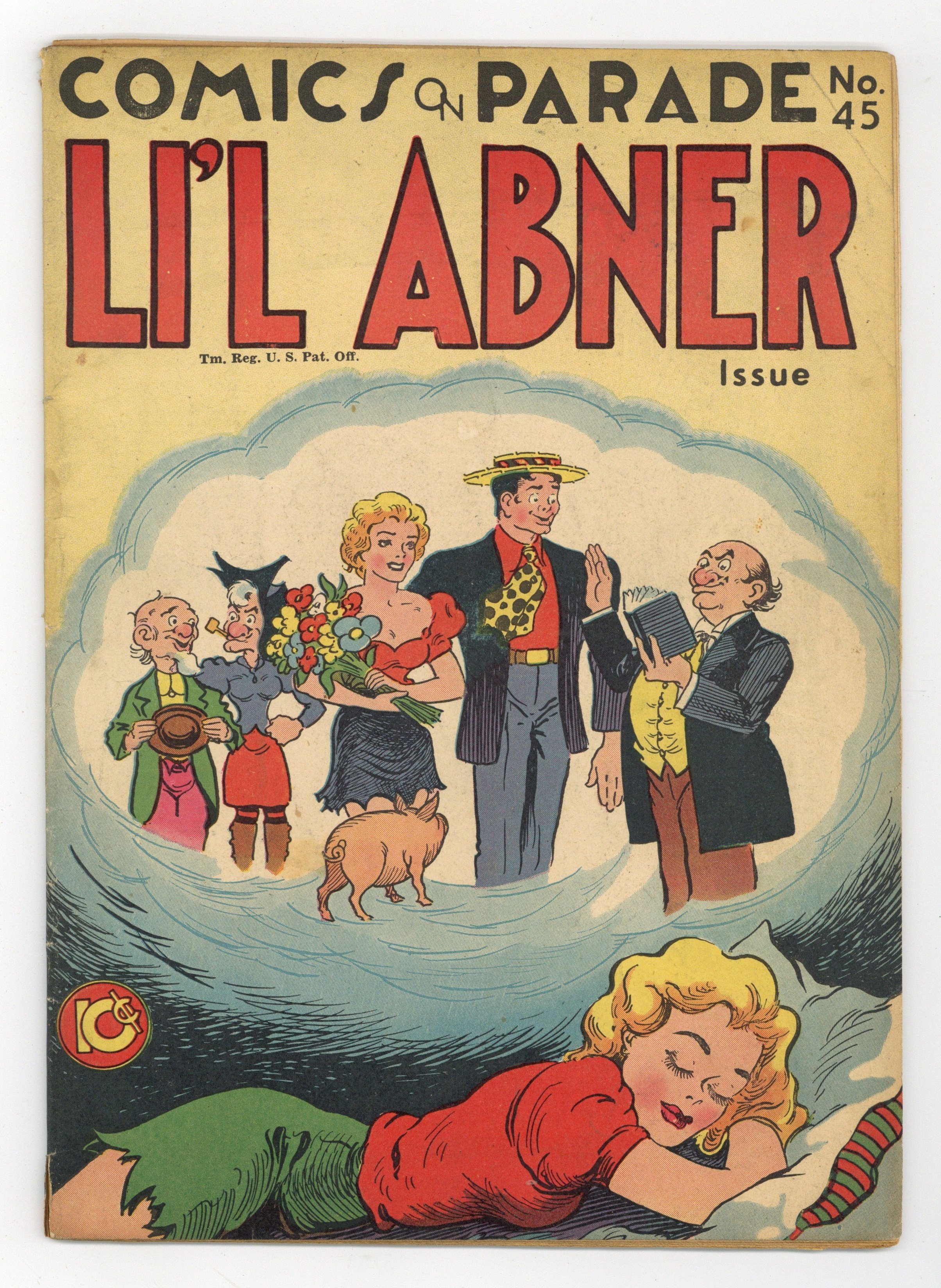 Cover by Al Capp. Stories and art by Al Capp and others. Sometimes listed as Comics on Parade Vol. 4 #9. Comics on Parade focused on a different United Features comic strip in every issue. This issue features the hillbilly antics of Al Capp's Li'l Abner. Killer on the run Gat Garson realizes he looks just like Li'l Abner, so he plays a little switcheroo. Mammy and Pappy are bewildered when "Abner" kicks his beloved pig Salomey and asks for "corn likker." Meanwhile, the real Li'l Abner is equally mystified why people are giving him money and calling him "Gat." Plus a PSA on wartime paper conservation. 48 pages, Full Color. Cover price $0.10. Grade: PR 0.5 explanation of grade Condition: Used (collectible)