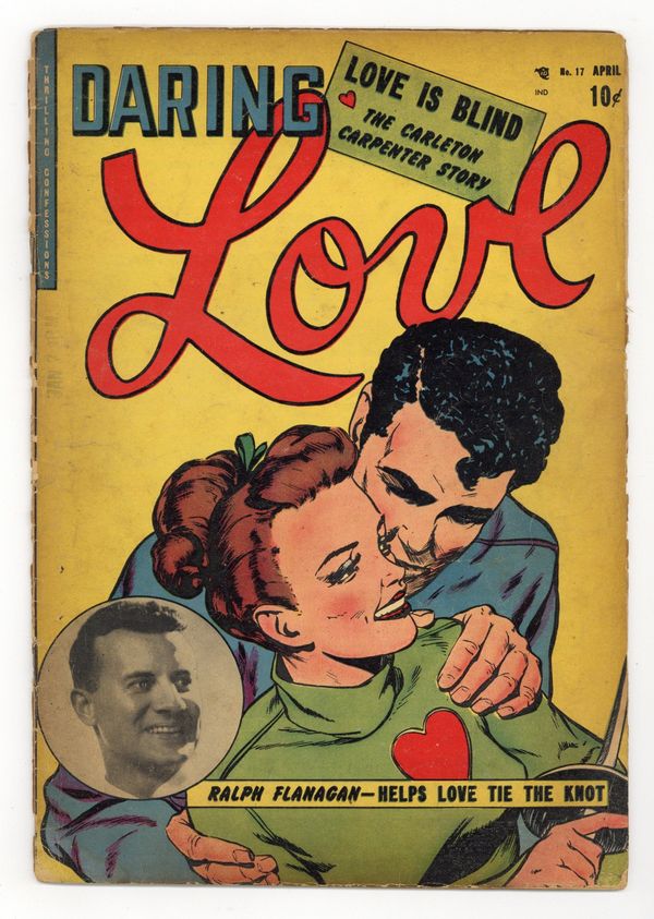 Cover by Joseph Szokoli. Stories and art by Joseph Szokoli, Vic Carrabotta, Vince Colletta and Doug Wildey. Tales of love and heartbreak, with a twist: in-story appearances by real-life musicians of the era. Jim and Terry find their failing business is also sinking their relationship, until they get some help from real-life band leader Ralph Flanagan, in a story with early art by Doug Wildey. Soldier Bill and war correspondent Nancy have a tempestuous relationship, and that's before they're stranded together on the battlefront in Korea. Undercover policewoman Hannah sets out to help the man she arrested and then fell in love with, but first she must catch the real culprit. Plus a profile of movie star Carleton Carpenter. Cover features a photo of Ralph Flanagan. Carleton Carpenter; Hard-Hearted Hannah; Love Is Blind; Love Me or Leave Me; Ralph Flanagan Helps Love Tie the Knot! Final issue of the series. 32 pages, Full Color. Cover price $0.10. Grade: FR 1.0 explanation of grade Condition: Used (collectible)