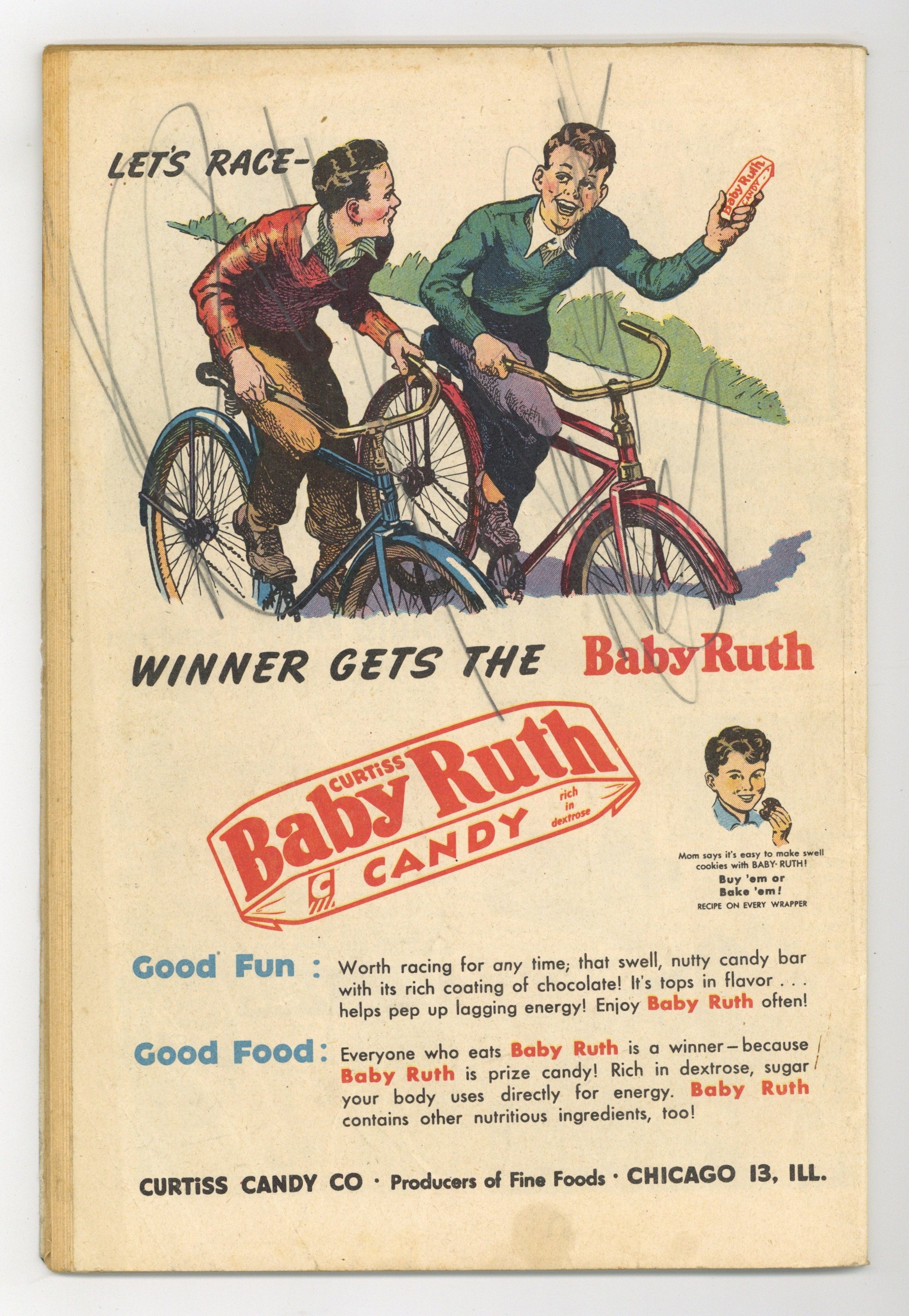 Starts Jan 3 Cover by Alex Schomburg. Stories by unknown. Art by Ralph Mayo, Art Gates, Edmond Good, Graham Ingels and unknown. In this issue: The Black Terror in "Spoils for the Slick" with the top panel of page two drawn by Graham Ingels; Judy of the Jungle in "Jungle Vendetta" with art by Ralph Mayo (story continued from #55); untitled Roger Dodger story with art by Art Gates; untitled The Crime Crushers story; and untitled Strut Simmons story with art by Edmond Good. Plus: 1-page text story "Masked Outlaw" (by Donald Bayne Hobart); untitled Exciting Facts 1-pager (with art by Rafael Astarita); 2-page text story "The Fish Mine" (by Charles S. Strong; credited as Charles Stoddard); and untitled Junior Judo 2-pager (with art by Dave Berg). 48 pages, full color. Cover price $0.10. Grade: GD- 1.8 explanation of grade Condition: Used (collectible)