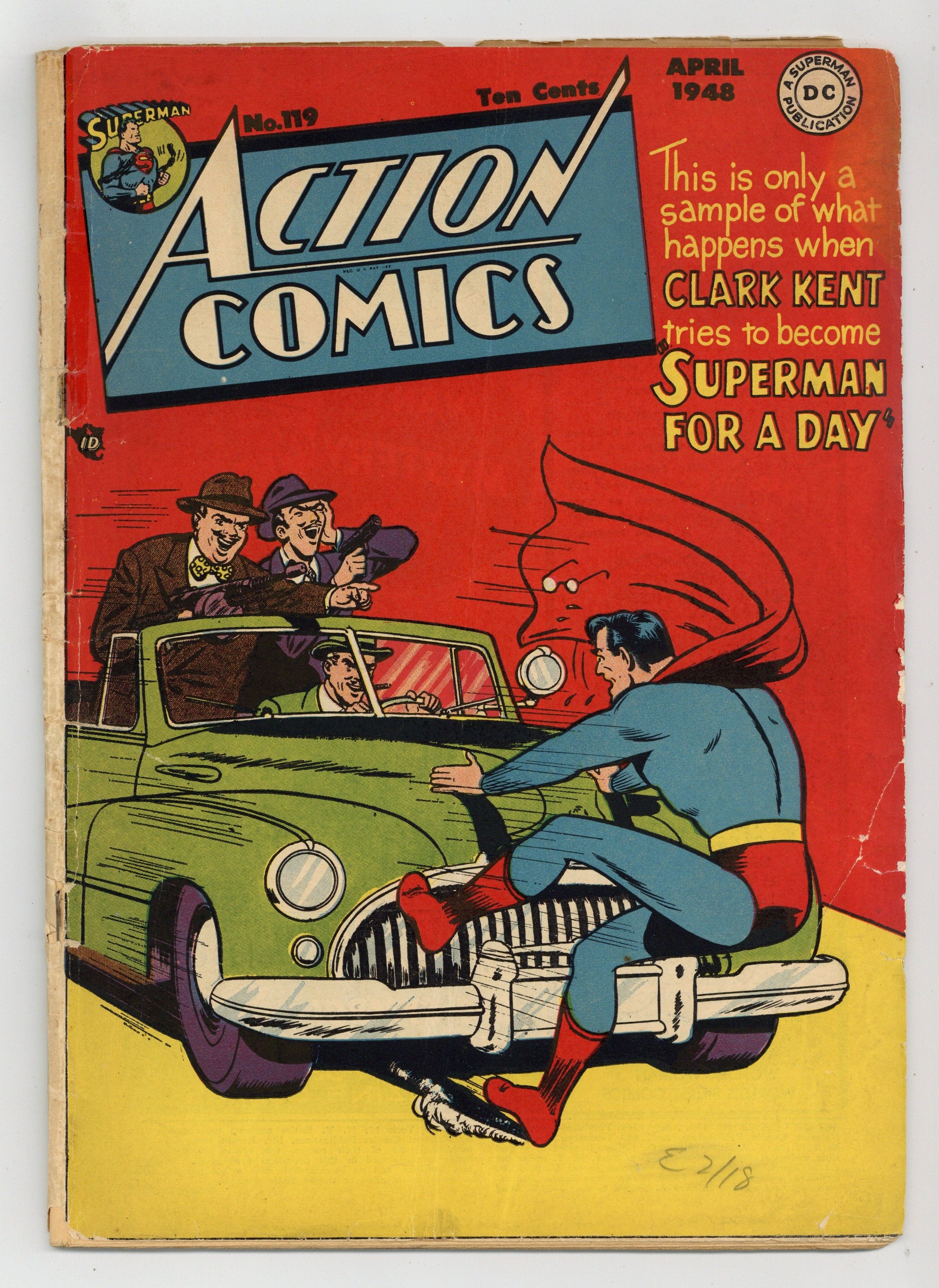 Cover art by Win Mortimer. Superman for a Day!, script by Edmond Hamilton, art by Win Mortimer. Treasure Trove! starring Congo Bill, art by Ed Smalle. Traps Killer Bear with Invisible Light starring Captain Tootsie, art by C. C. Beck. Concert for Crime! starring Zatara, script by Joe Samachson, art by W. F. White. Cabbie Casey story, script and art by Jack Farr. The Birthday That Backfired! starring Vigilante, script by Don Cameron, pencils by Mort Meskin. 52 Pages, Full Color. $.10 Cover price $0.10. Grade: GD 2.0 explanation of grade Condition: Used (collectible)