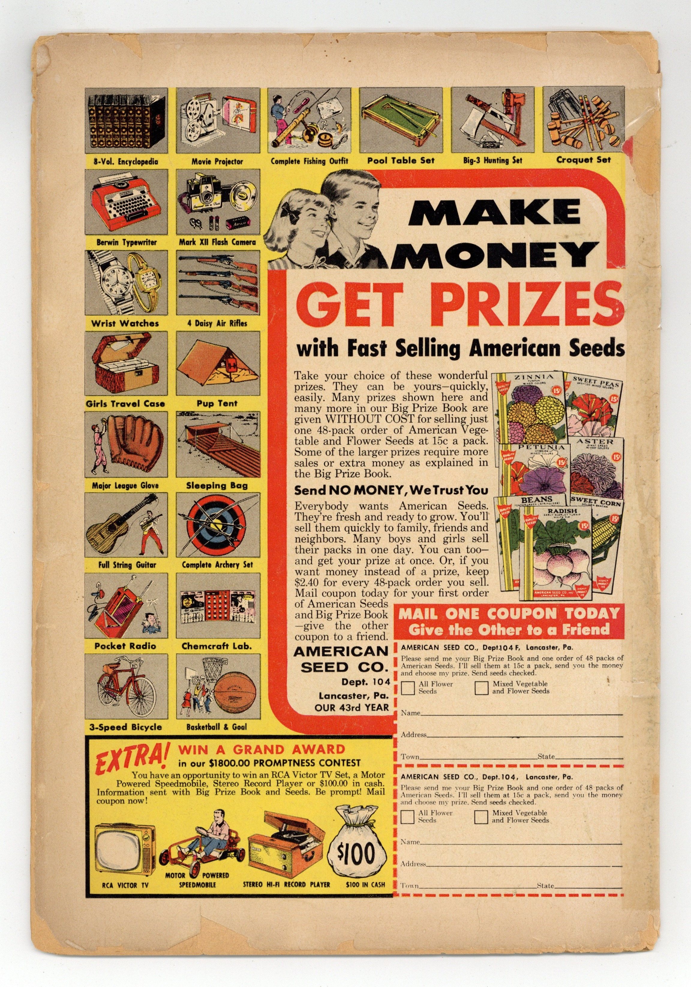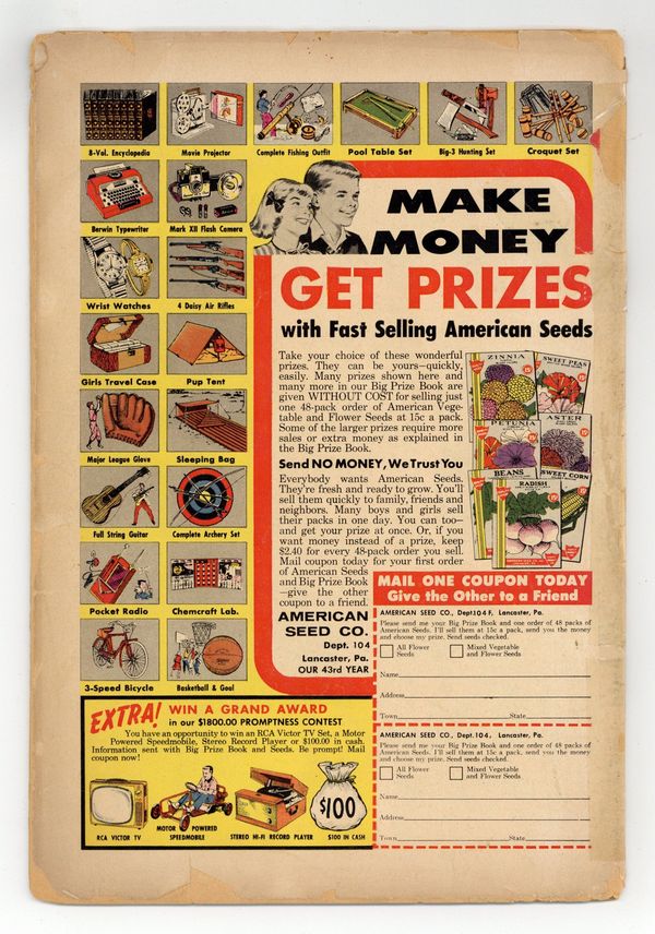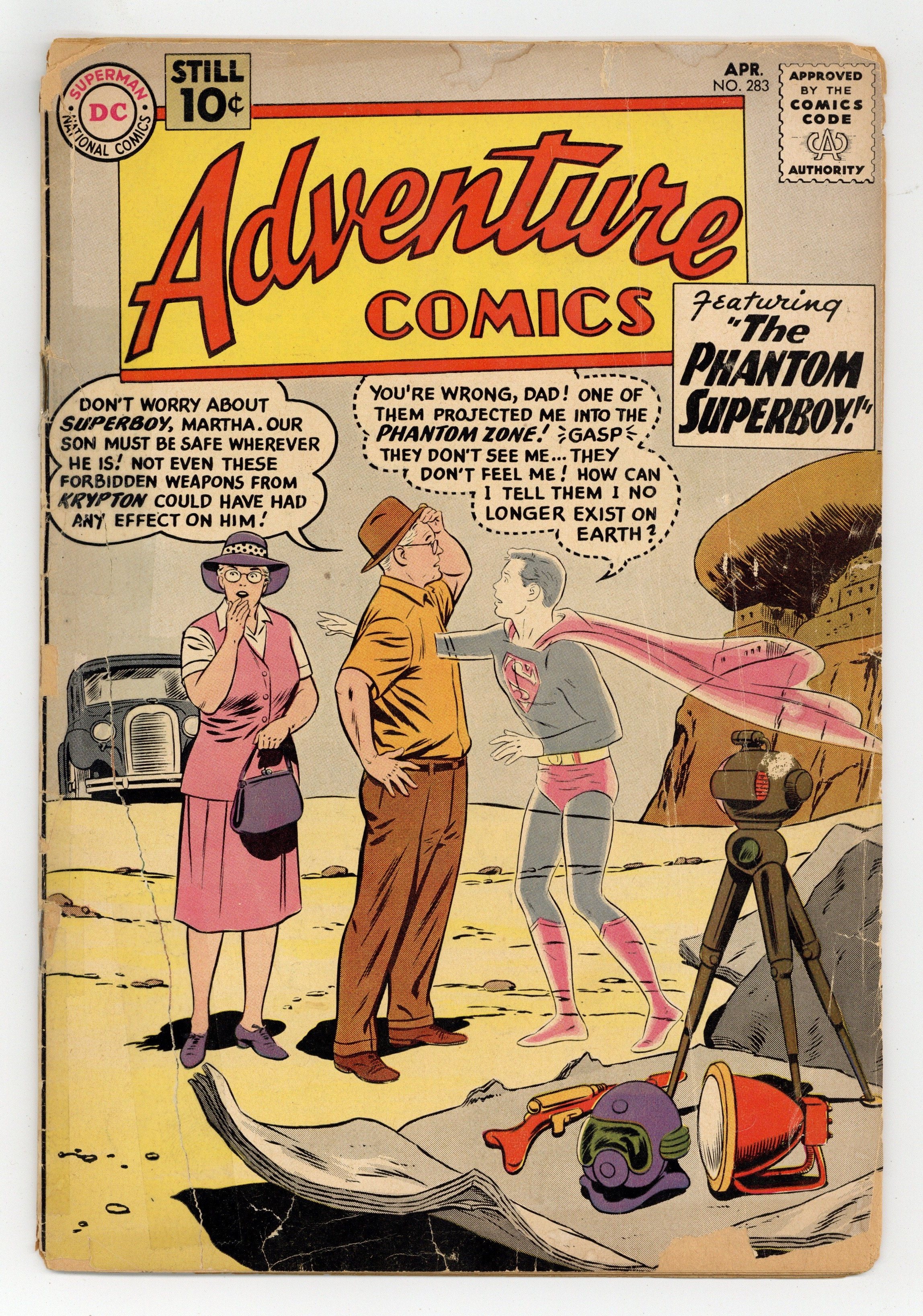 Cover pencils by Curt Swan, inks by Stan Kaye. 1st appearance of the Phantom Zone in The Phantom Superboy, script by Robert Bernstein, art by George Papp; After Professor Lang finds a box of Kryptonian weapons, Superboy is accidentally projected into the Phantom Zone, the place where Kryptonian criminals were exiled. A Salute to Our American Indians public service announcement, script by Jack Schiff, art by Bernard Baily. The Lion with the Double Identity starring Congorilla, script by Robert Bernstein, art by Howard Sherman. Little Pete humor page by Henry Boltinoff. 36 pages, Full Color. Cover price $0.10. Grade: PR 0.5 explanation of grade Condition: Used (collectible)
