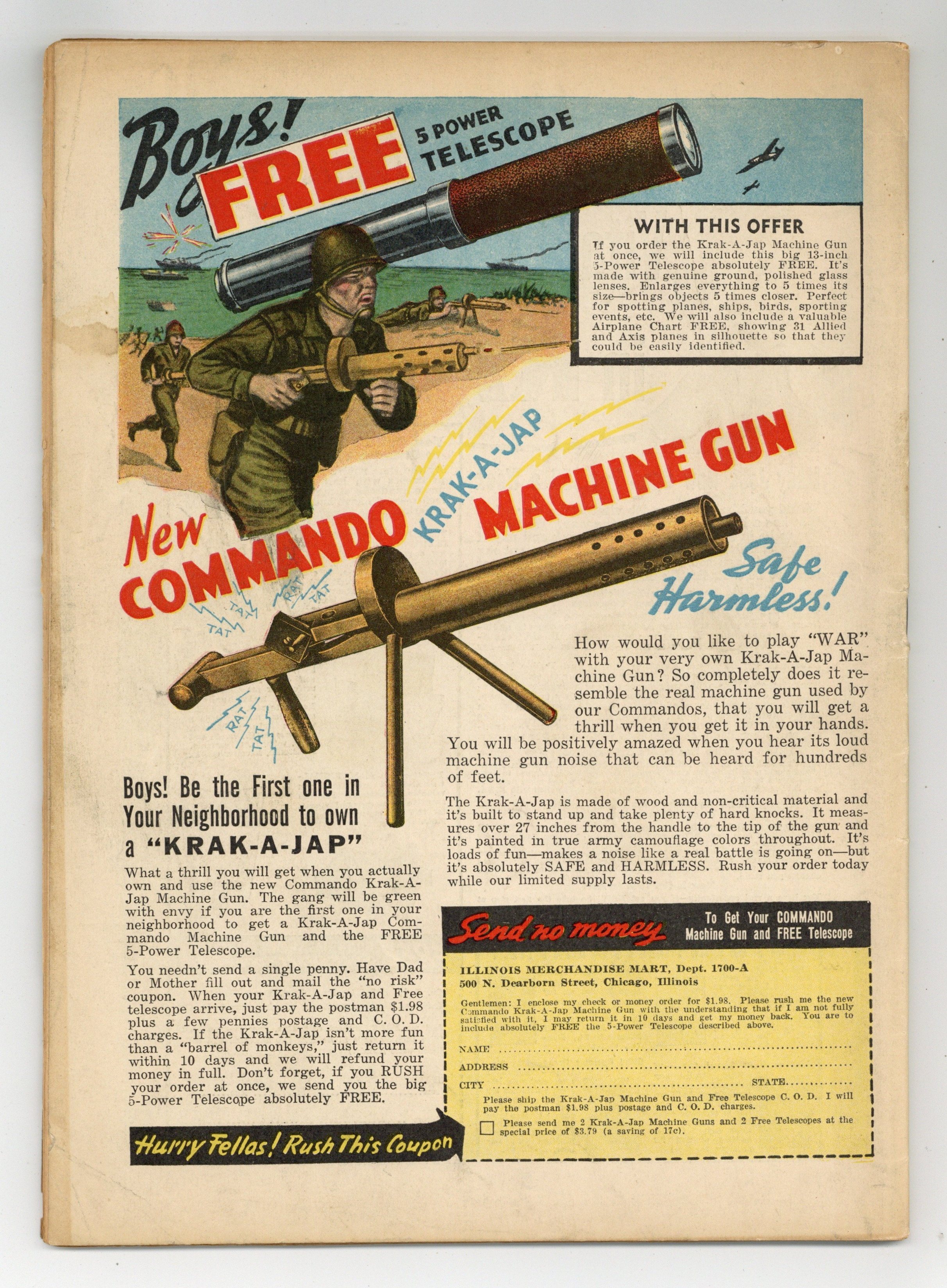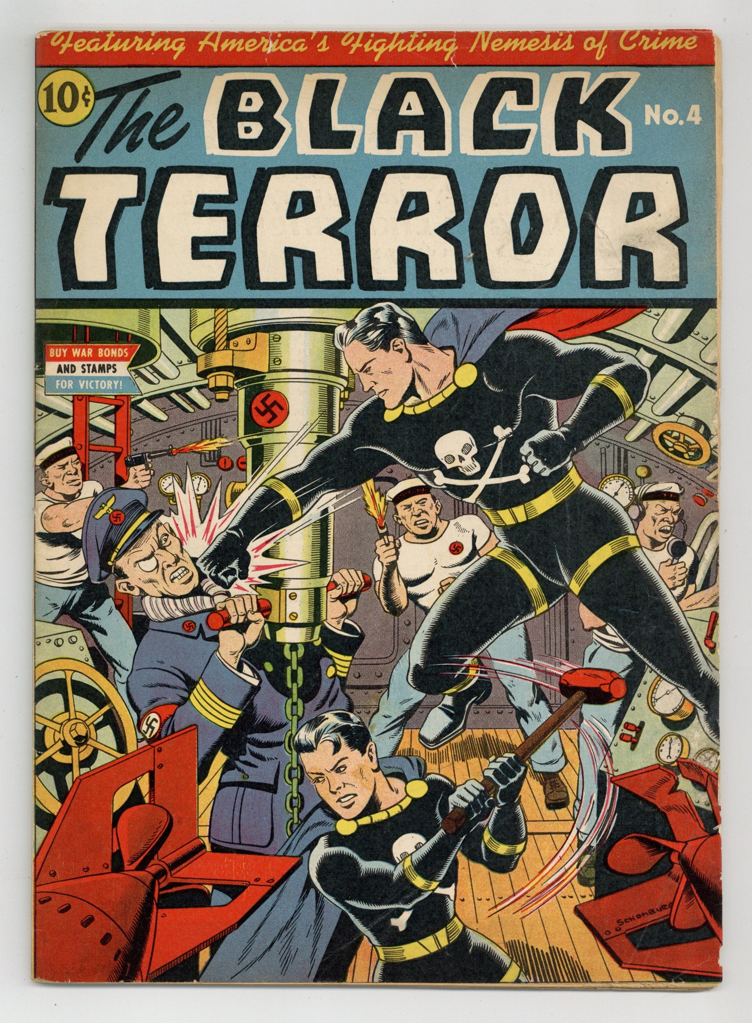 Edited by Ned L. Pines. Cover by Alex Schomburg. Stories by Richard Hughes, Chuck Stanley, Michael O'Brien, and Al Camy. Three untitled Black Terror stories, plus Crime Crushers back-up story. 60 pages, full color. $0.10. Cover price $0.10. Grade: PR 0.5 explanation of grade Condition: Used (collectible)