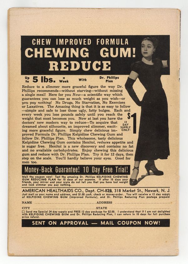 Cover by L. B. Cole. Pre-Code horror and crime comics from L. B. Cole's Star Publications. Soldiers on the battlefield are aided by the spirit of a dead comrade. Clare Mangin uses poison to collect insurance policies on her hapless husbands. The so-crazy-it-must-be-true story of the stealing of the steamship SS Ferret from Scotland to Australia in 1880. Footprint of Death; Killer at Large; The Witch of Terror; The Weird Murder; The Saga of the Slaughter at Sea. 36 pages, Full Color. Cover price $0.10. Grade: VG- 3.5 explanation of grade Condition: Used (collectible)