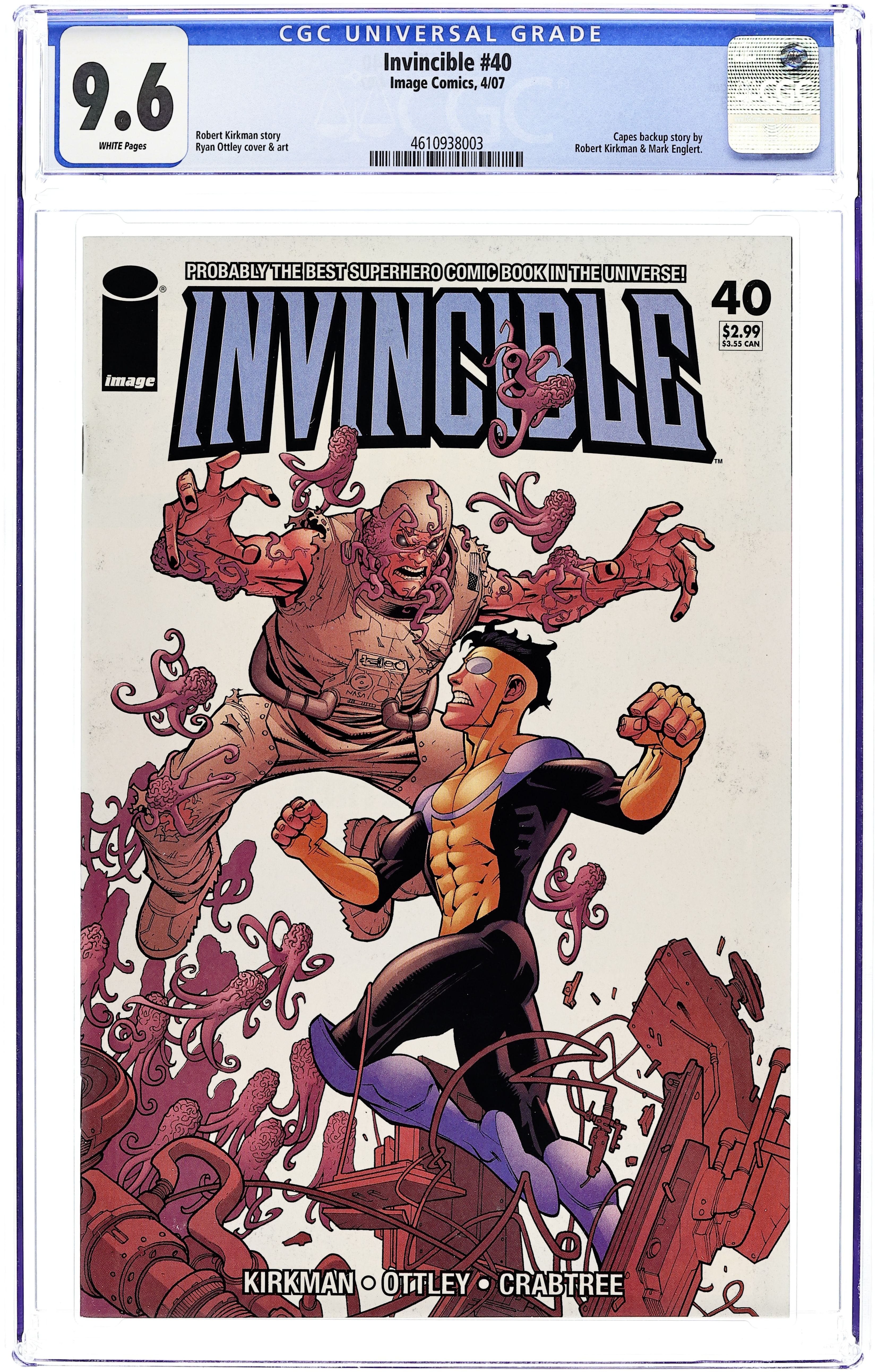 Starts Dec 8 story ROBERT KIRKMAN art & cover RYAN OTTLEY & BILL CRABTREE Invincible vs. The Sequids for the FATE OF THE EARTH! 32 PAGES FC Cover price $2.99. Grade: CGC 9.6 explanation of grade Condition: Used (collectible)