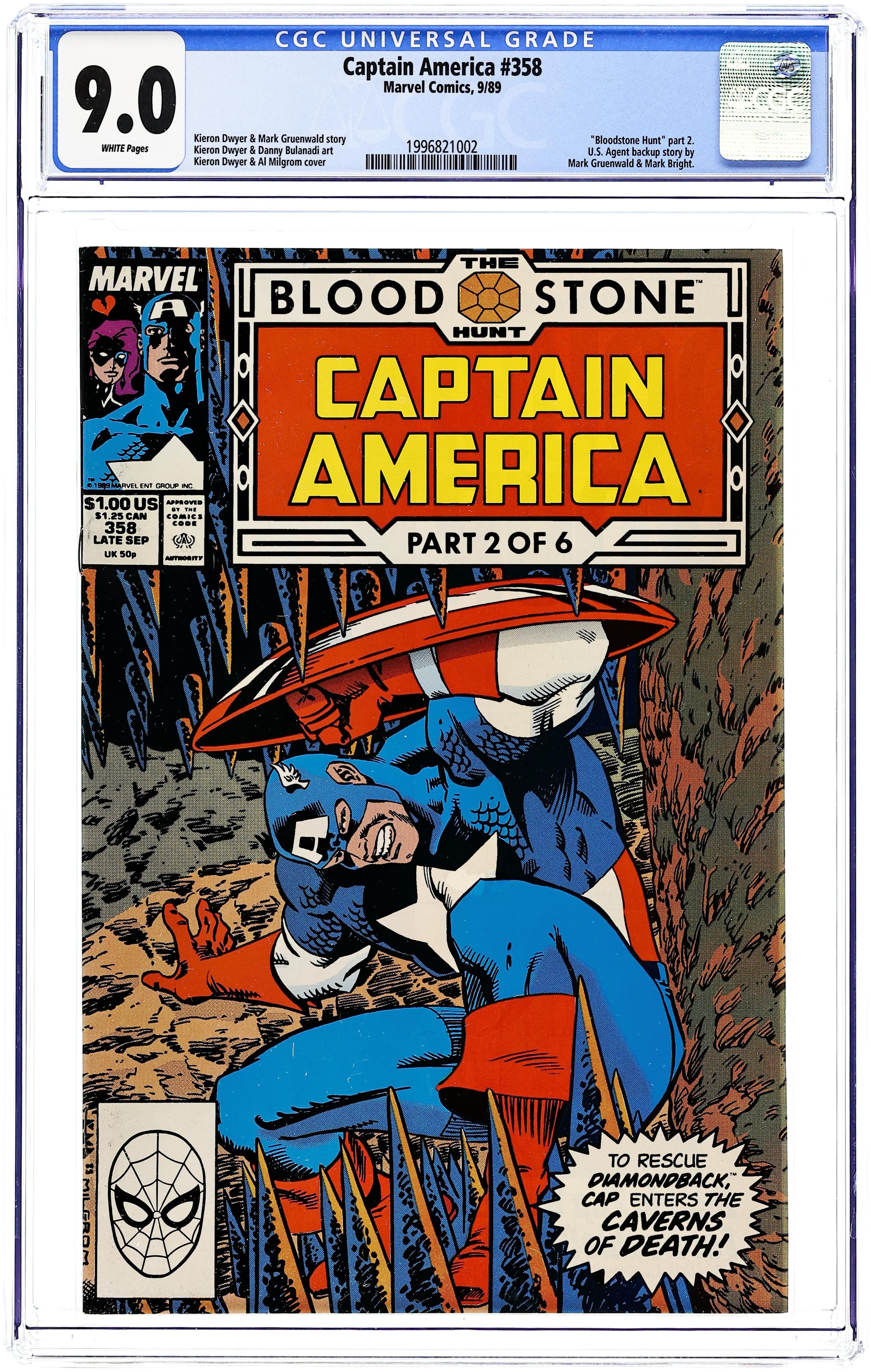 Tags: Bloodstone Hunt (part 2), Marvel Legacy Numbering: Captain America (part 358), Scourge of the Underworld (part 9)Captain America (1968 1st Series) 358 CGC 9.0