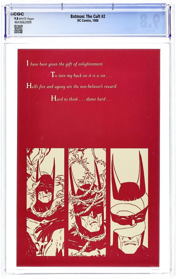 Ends Dec 8 7:41 PM CST Bid History 4 bids Current Bid $22 Your Secret Max Bid If you'd like to bid, please log in or register. Book two of a four-issue series, "Capture" finds Batman drugged and under the influence of Deacon Joseph Blackfire's religious cult. Prestige format, written by Jim Starlin with art by Bernie Wrightson. Cover price $3.50. Grade: CGC 9.8 explanation of grade Condition: Used (collectible)