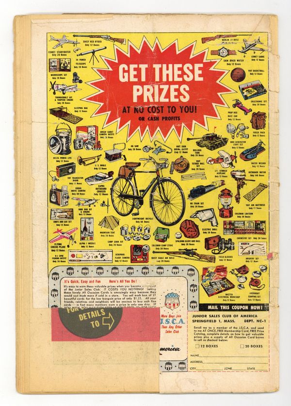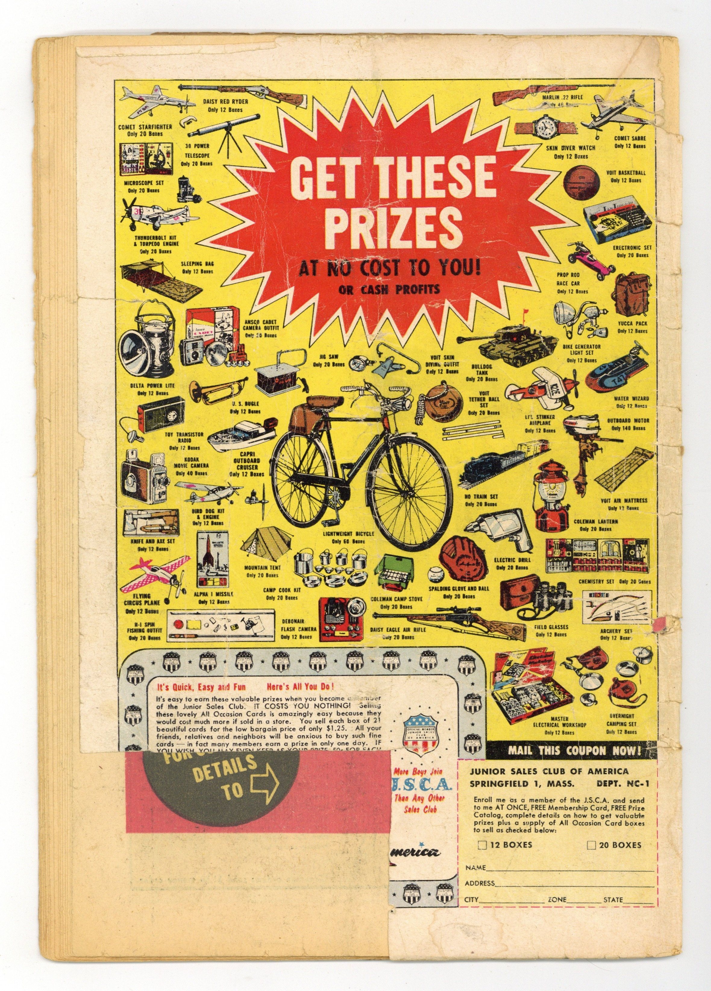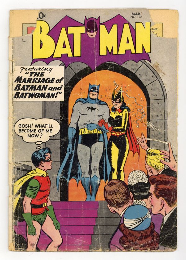 Cover pencils by Curt Swan, inks by Stan Kaye. "Prisoners of the Sargasso Sea," script by Bill Finger, pencils by Sheldon Moldoff, inks by Charles Paris; While chasing a modern-day pirate, Blackjack, Batman and Robin are marooned in the Sargasso Sea; There they discover others who have been trapped for centuries by the seaweed and its strange, age-defying gas. Detective Comics #265 ad. One-page Strange Old Laws story by Henry Boltinoff. "The Cross Country Crimes!", script by Bill Finger, pencils by Sheldon Moldoff, inks by Charles Paris; Batman and Robin foil Hijack and his gang, who have been robbing trucks of Carter trucking, including one containing platinum. "Double-Dealer in Diamonds" text story. One-page Warden Willis story by Henry Boltinoff. The Family Favorite! public service announcement, art by Bernard Baily. "The Marriage of Batman and Batwoman," script by Bill Finger, pencils by Sheldon Moldoff, inks by Ray Burnley; Dick Grayson goes to sleep while Bruce is out on a date with Kathy, and dreams of the loss of their secret identities caused by Bruce's and Kathy's marriage. 36 Pages, Full Color. Cover price $0.10. Grade: FR 1.0 explanation of grade Condition: Used (collectible)