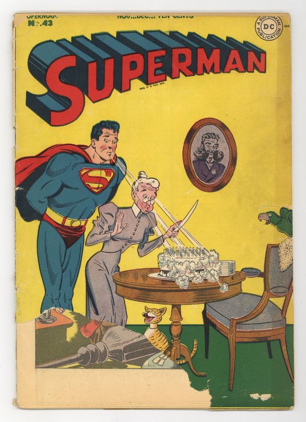 Cover pencils by Wayne Boring, inks by Stan Kaye. The Inventions of Hector Thwistle! starring Superman, Hector Thwistle, Lois Lane, and Perry White, script by Jerry Siegel, pencils by Joe Shuster, inks by George Roussos. Lois Lane, Actress starring Superman, Joe Corcoran, and Perry White, script by Alvin Schwartz, pencils by Joe Shuster, inks by George Roussos. Kaflappos humor page by Jack Callahan. Shorty humor two-pager by Henry Boltinoff. Good Cops text story by Randolph Allen. The Molten World starring Superman, Luthor, Lois Lane, and Perry White, script by Don Cameron, pencils by John Sikela. 52 Pages, Full Color. Cover price $0.10. Grade: PR 0.5 explanation of grade Condition: Used (collectible)