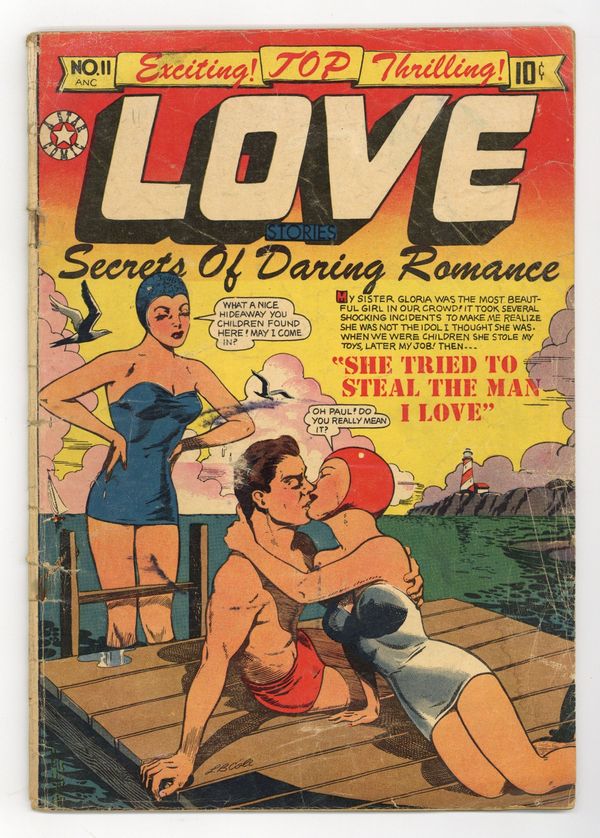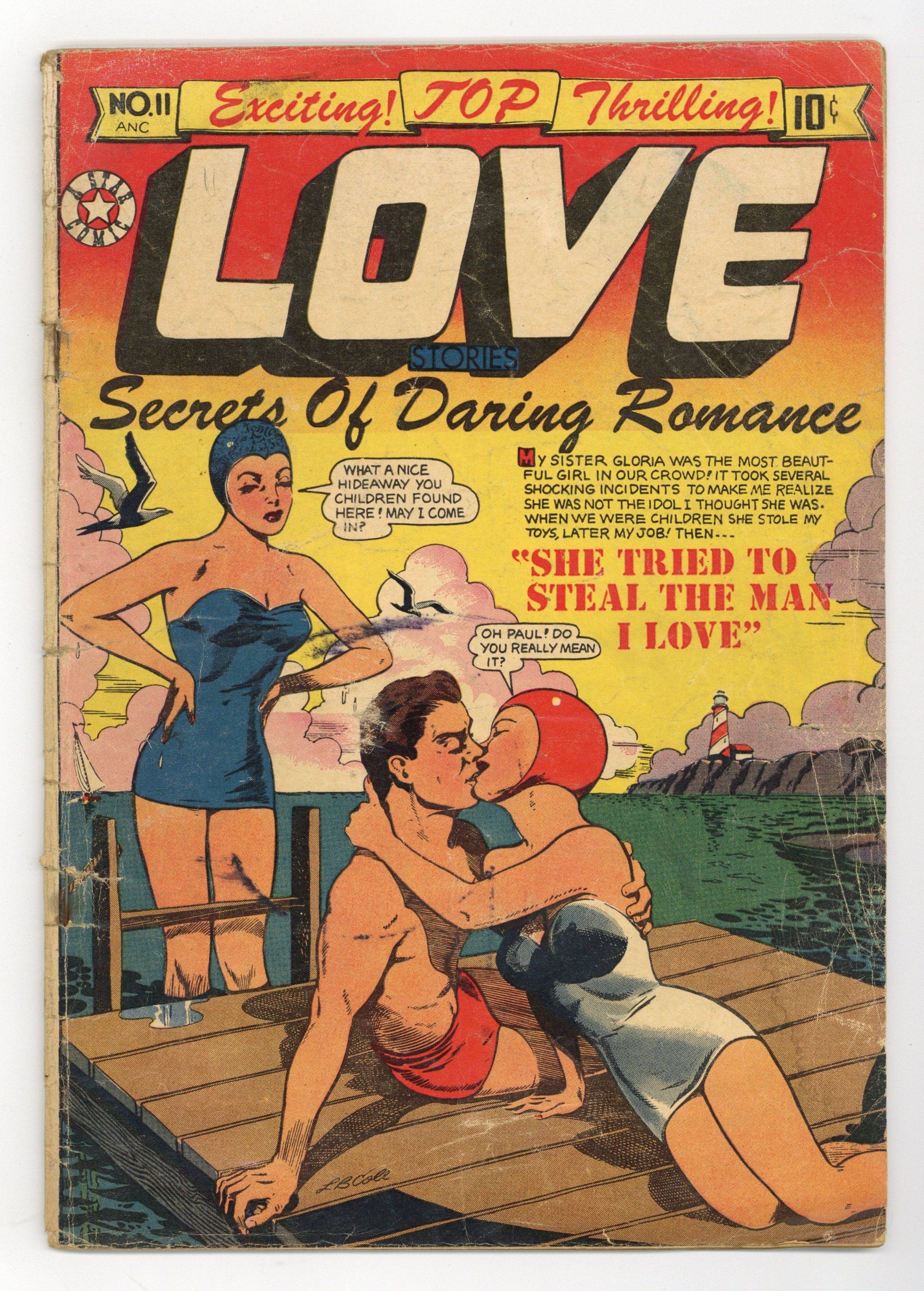 L.B. Cole cover. Contains original and reprinted material as noted. In order of appearance: "My Shameful Past" art by Jay Disbrow; "Love Finds a Way" reprinted from Top Love Stories (1951) #5 and True to Life Romances (1949) #9; "The Sin in My Heart" retitled and reprinted from "He Must Never Know" in My Desire (1949) #31; and "She Tried to Steal the Man I Love.." reprinted from "They Said I Was Guilty" in My Love Affair (1949) #2. "I'll Never Mistrust You Again" text story retitled and reprinted from "My Love Was a Secret" in My Life (1948) #9. 36 pages. Full color. Cover price $0.10. Grade: FR/GD 1.5 explanation of grade Condition: Used (collectible)