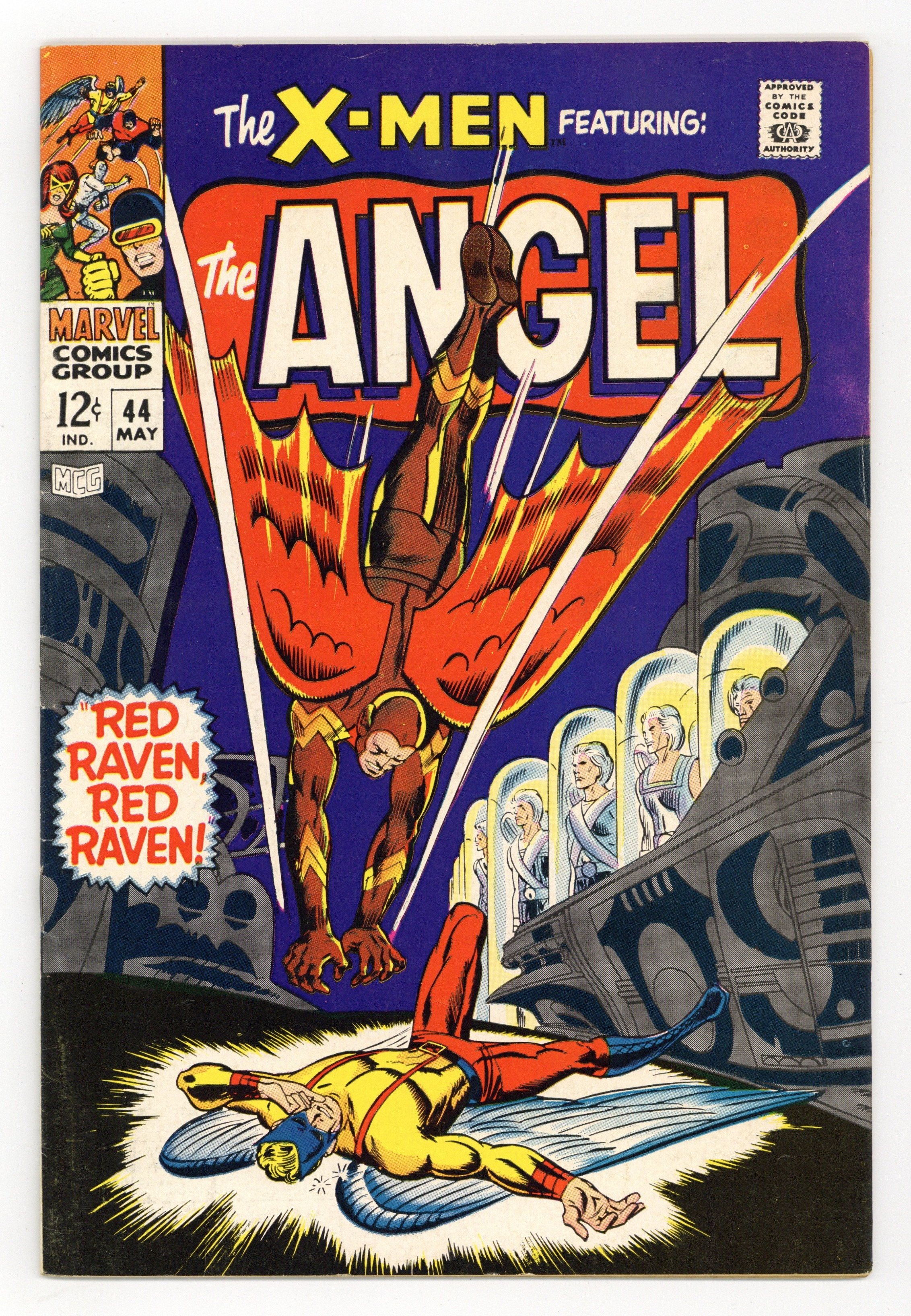 First silver age appearance of the golden age Red Raven in "Red Raven, Red Raven..." Plot by Roy Thomas. Script by Gary Friedrich. Art by Don Heck (layouts), Werner Roth (pencils), and John Tartaglione (inks). Cover by Don Heck (pencils) and John Tartaglione (inks) with Marie Severin (alterations). The Uncanny X-Men have gone down to defeat at the hands of the Brotherhood of Evil Mutants! But auspiciously for the young mutants, Quicksilver convinces Magneto to spare their lives and keep Professor X's charges as prisoners instead! While in captivity the resourceful Angel escapes from his cage! Warren wants to free his friends next; however, Cyclops tells him to leave now and fly to Avengers Mansion! Angel starts flying east where he unbelievably runs into Sky-Island - the home of Red Raven and the bird-people! Wow, what a blast from the past! Is Red Raven going to help Angel or harm him? Appearances by the Scarlet Witch and Toad. Second story: "The Iceman Cometh!" Script by Gary Friedrich. Pencils by George Tuska. Inks by John Verpoorten. This five-page story presents the origin of Iceman (aka Bobby Drake). Cameo appearances by Professor X and Cyclops. (Notes: Red Raven previously appeared in Red Raven Comics (1940) #1. The letters page includes a letter from comics artist Keith Giffen. This story was reprinted in Uncanny X-Men #92.) 36 pages. Cover price $0.12. Grade: FN- 5.5 explanation of grade Condition: Used (collectible)