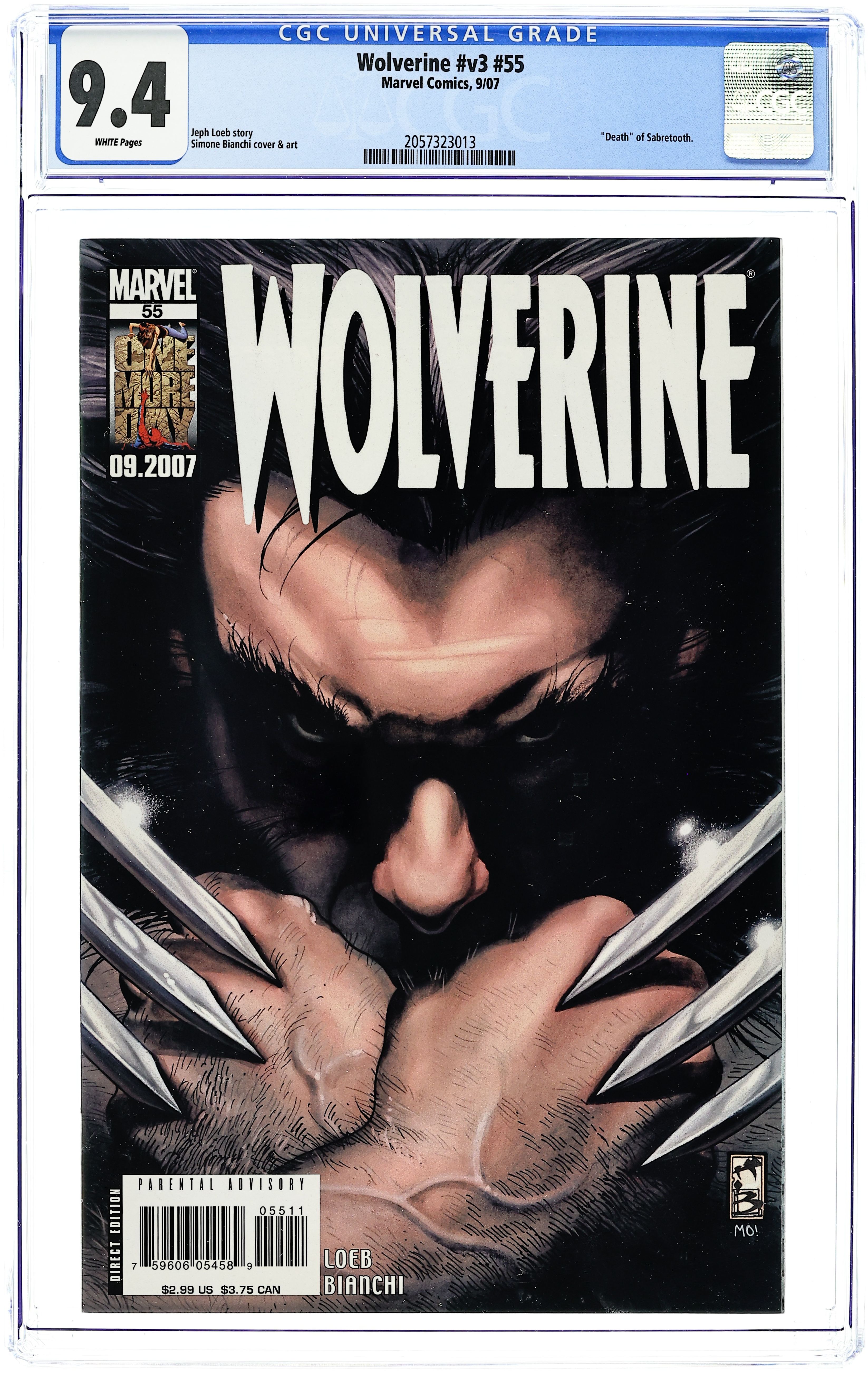 Written by JEPH LOEB Pencils and Cover by SIMONE BIANCHI It's time for the final round in Wolverine's decades-long grudge match with Sabretooth, courtesy of superstars Jeph Loeb (Batman: Hush) and Young Guns reloaded artist Simone Bianchi -- and this time only one of them is walking away. Get ready for one of the most eye-popping endings in recent Marvel history, True Believer! 32 PGS./Parental Advisory Cover price $2.99. Grade: CGC 9.4 explanation of grade Condition: Used (collectible)