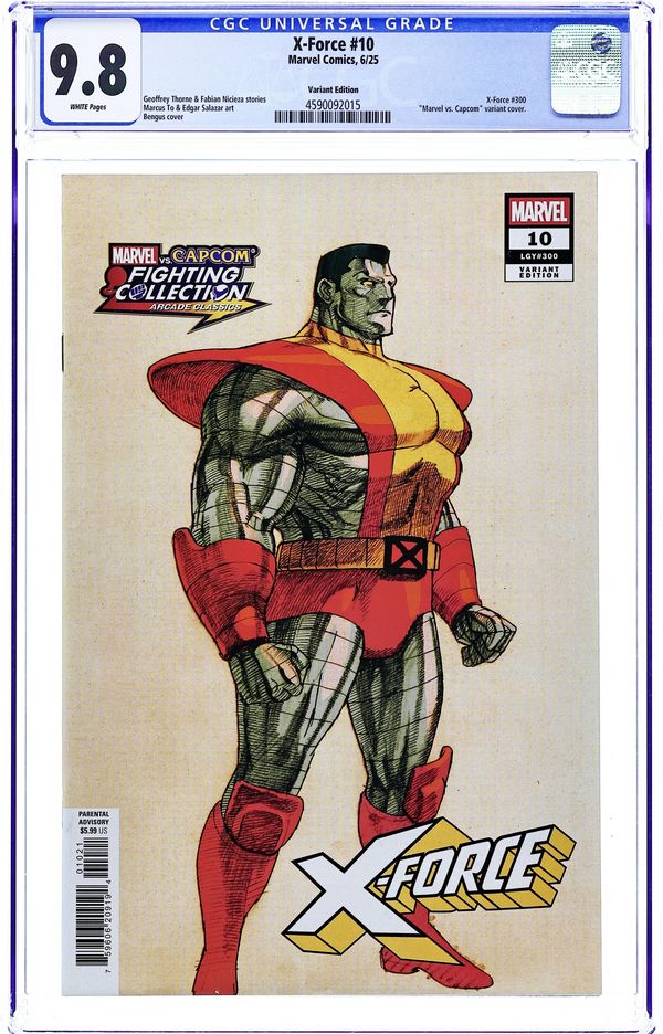 Ended Nov 17 2025 Bid History 11 bids Winning Bid $22 Written by Geoffrey Thorne; Fabian Nicieza. Art by Marcus To, Edgar Salazar. Cover by Bengus. CELEBRATING 300 ISSUES OF X-FORCE WITH STARTLING REVELATIONS! FORGE has assembled X-FORCE to fix the world's problems, but at last, THE SOLUTION reveals itself! WHO or WHAT is the Solution, and what does it mean for the fate of the world? New villains, old friends and a terrible decision that will change them all forever! PLUS: A special anniversary tale featuring X-FORCEs past by Fabian Nicieza! Note: This issue contains a key appearance by CLASSIFIED. 44 pages, full color. Rated Parental Advisory Cover price $5.99. Grade: CGC 9.8 explanation of grade Condition: Used (collectible) unless item is a new release