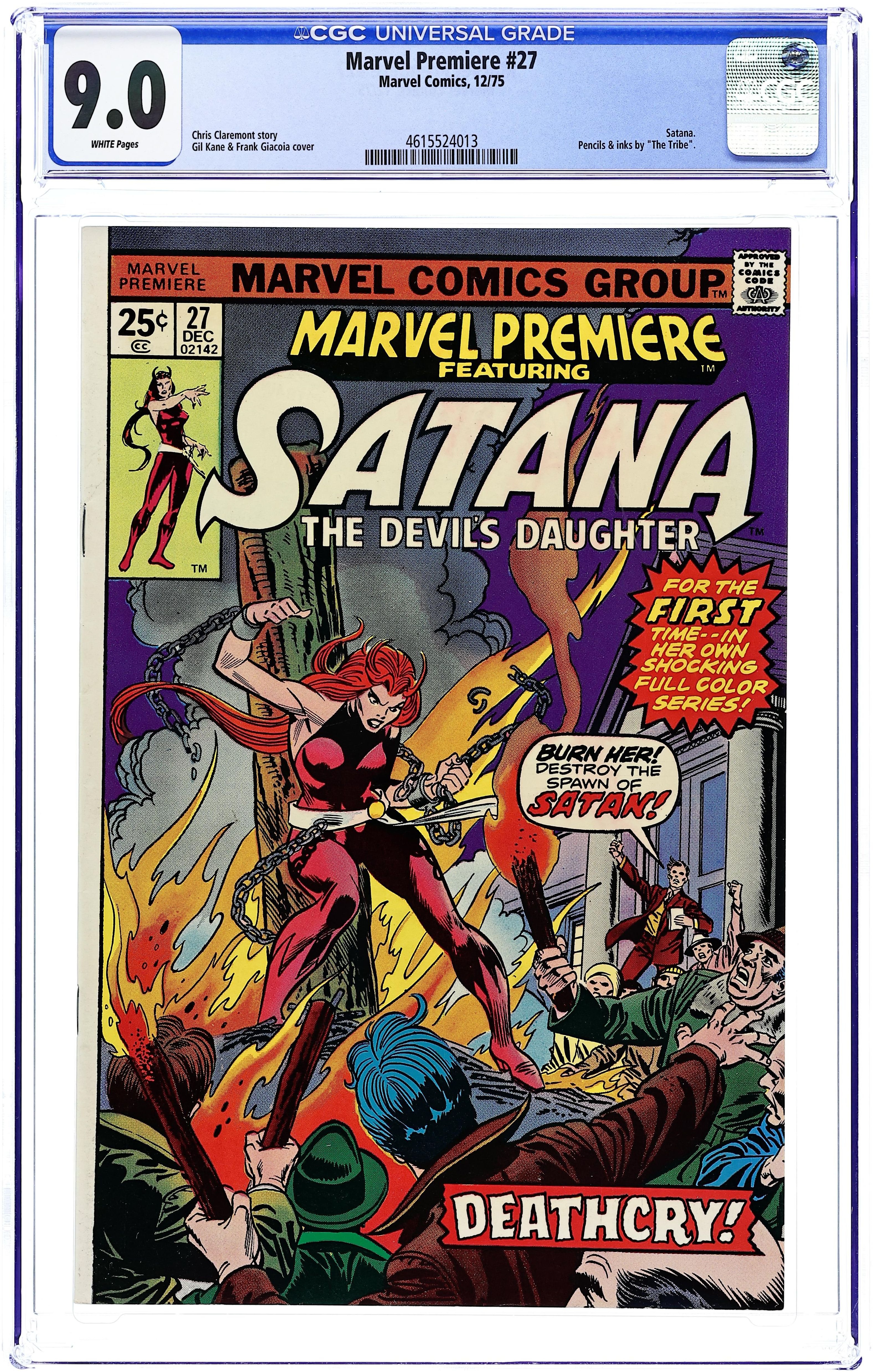 Ends Dec 8 8:51 PM CST Bid History 6 bids Current Bid $14 Your Secret Max Bid If you'd like to bid, please log in or register. "Deathsong" Chris Claremont script. Art by The Tribe and Janice Cohen. First full-color solo story featuring Satana. While traveling through California, Satana encounters a young woman who's being chased by a mob claiming she's a witch. However, Satana gets more than she bargained for after she has the woman freed. Also included is a back-up reprint story of Satana's first appearance from Vampire Tales #2. 32 pgs. Full color. 25 cent cover price. Cover price $0.25. Grade: CGC 9.0 explanation of grade Condition: Used (collectible)