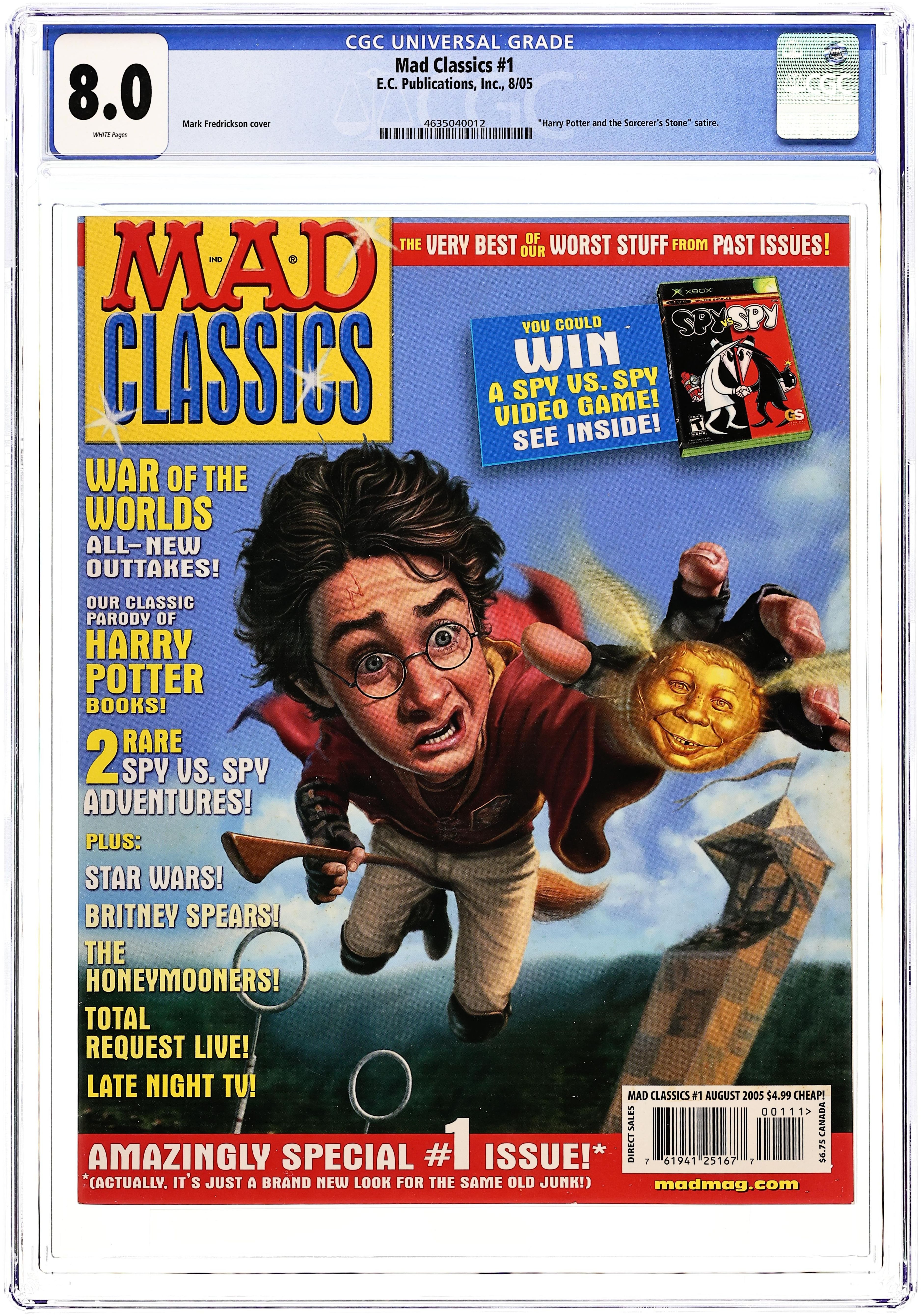 Stories and Art by The Usual Gang of Idiots. The very best of our worst stuff from past issues! Amazingly special #1 issue!* (*Actually, it's just a brand new look for the same old junk!) In this issue: War of the Worlds - all-new outtakes! Plus: Our classic parody of Harry Potter books! And: 2 rare Spy vs. Spy adventures! Also: Star Wars; Britney Spears; The Honeymooners; Total Request Live; and Late Night TV! 96 pages. Cover price $4.99. Grade: CGC 8.0 explanation of grade Condition: Used (collectible)