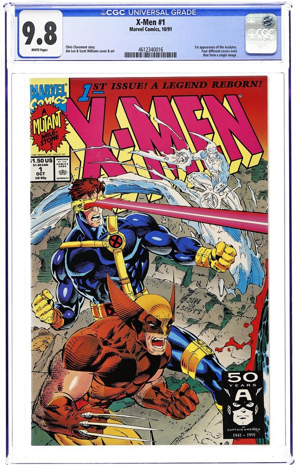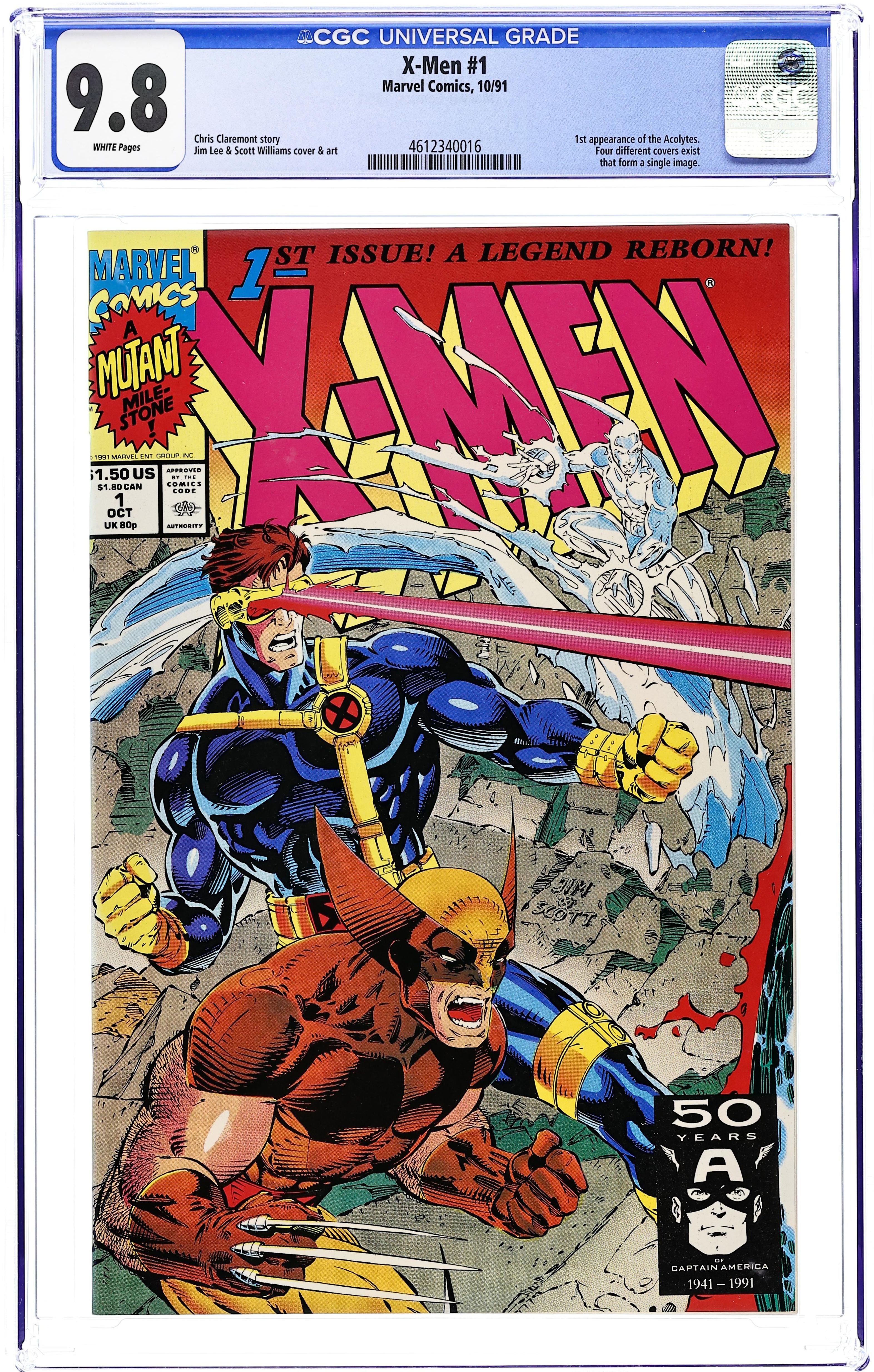 Ended Nov 17 10:17 PM CST Bid History 9 bids Winning Bid $68 Direct Edition. Cyclops/Wolverine/Iceman cover. Cover pencils by Jim Lee, inks by Scott Williams. Rubicon, script by Jim Lee (Co-Plot) and Chris Claremont, pencils by Jim Lee, inks by Scott Williams; Magneto forms the Acolytes and proclaims Asteroid M a haven for mutants everywhere; But the rest of the world doesn't see it that way; Nick Fury cameo. 2-page pin-up: gallery of X-Men villains. X-Men Sketchbook by Jim Lee. Cover price $1.50. NOTE: Cover C connects to covers 1A, 1B, and 1D to form a single giant image. Cover price $1.50. Grade: CGC 9.8 explanation of grade Condition: Used (collectible)