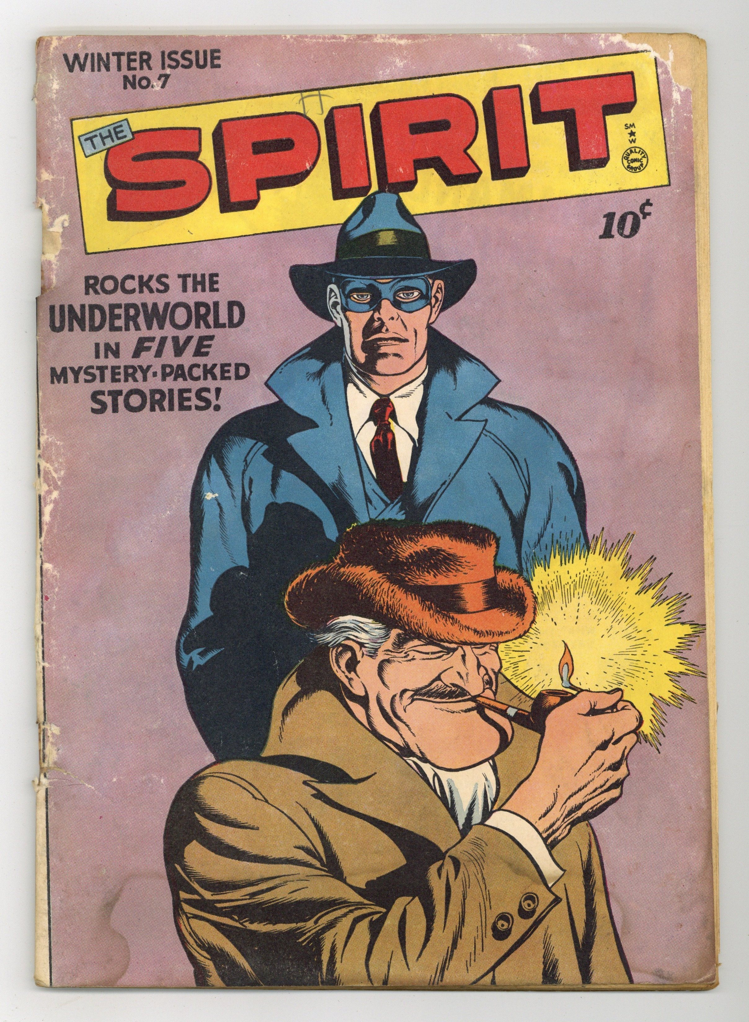 Cover art by Lou Fine. Untitled Spirit story, script by Manly Wade Wellman. Jonesy humor page by Bernard Dibble. Untitled Spirit, script by Manly Wade Wellman, pencils by Lou Fine, inks by Lou Fine and the Quality staff. Untitled Spirit story with The Dancing Gang, script by Bill Woolfolk, pencils by Lou Fine, inks by Lou Fine and the Quality staff. The Case of the Kindly Dragon, script by Manly Wade Wellman. Surrealist Art Exhibit starring Flatfoot Burns, art by Al Stahl. Renegade Slave text story. Untitled Spirit story, script by Manly Wade Wellman; the Treasure of the S. S. Jackson. 52 pages, full color. Cover price $0.10. Grade: PR 0.5 explanation of grade Condition: Used (collectible)