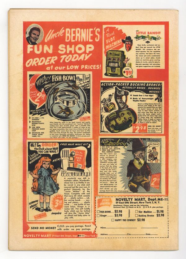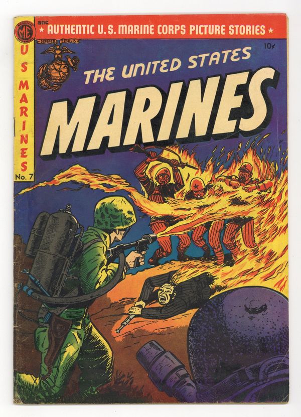 Published by Magazine Enterprises. Cover by Dick Ayers and Ernie Bache. Edited by Raymond C. Krank. Stories and art by Bob Powell and others. Sometimes listed as A1 Comics (1944 Life's Romances) #68. Action-packed fact and fiction about the US Marine Corps, in a series revived for the Korean War. A pilot flies night raids over Korea; The story of the battle of Tripoli, remembered in song in the Marines' Hymn; Profiles of the U.S.M.C. Hall of Fame. The Man in the Flying Nightmare; Marine Boot Camp; The Shores of Tripoli!; "Look After My Billy!"; Mister Marine Corps; The Spirit of Semper Fi! 36 pages, Full Color. Cover price $0.10. Grade: VG 4.0 explanation of grade Condition: Used (collectible)