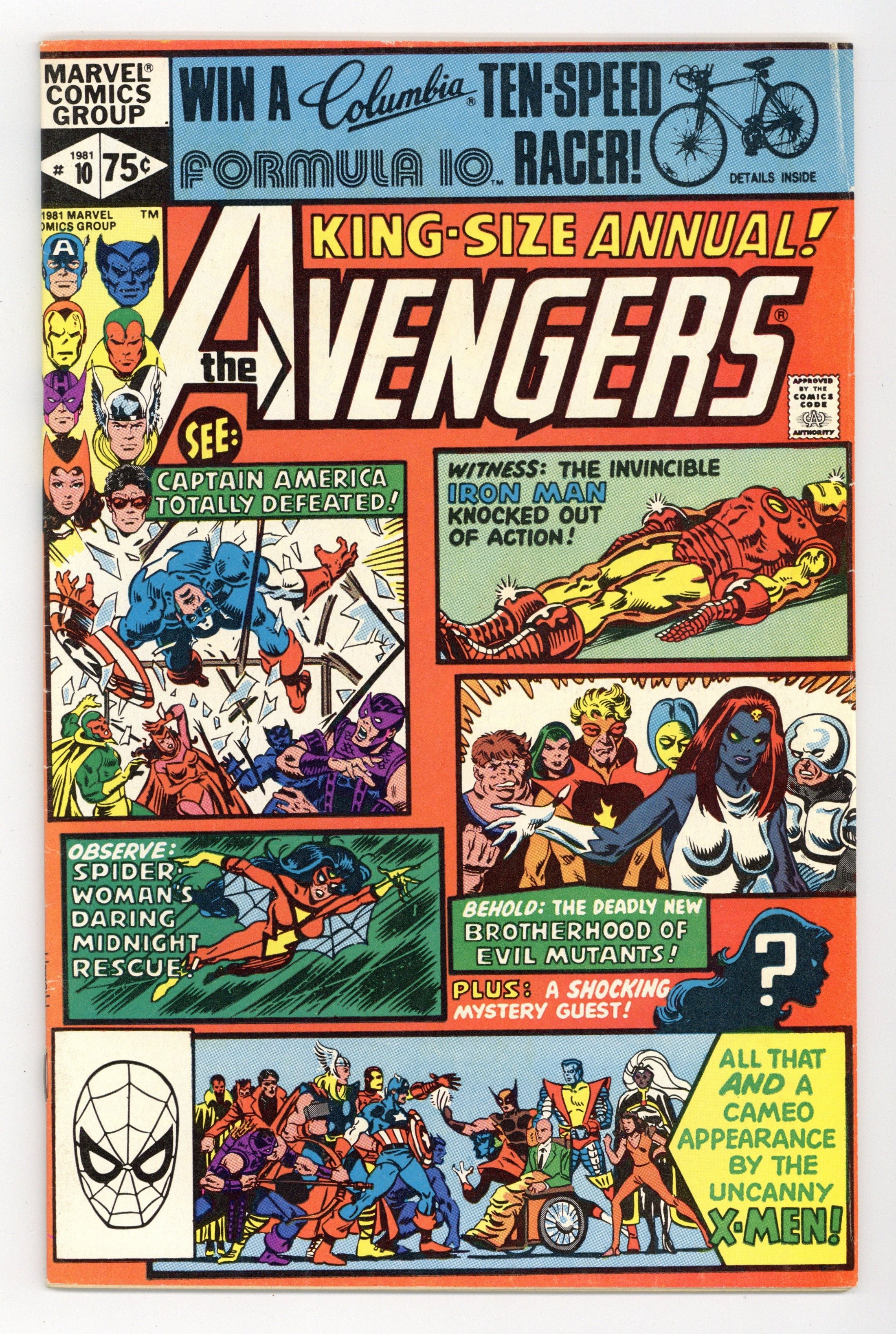 Ended Nov 24 2025 Bid History 14 bids Winning Bid $61 Direct Edition. First appearance of Rogue and Madelyne Pryor in "By My Friends Betrayed!" Spider-Woman, X-Men, Carol Danvers, and New Brotherhood of Mutants guest star. Script by Chris Claremont. Pencils by Michael Golden. Inks by Armando Gil. Cover by Al Milgrom. This action-packed annual has got it all, true believers: the first appearance of Rogue, the spectacular art of Michael Golden, the tragic return of Carol Danvers, and the stupendous struggle between the Brotherhood of Evil Mutants and the mighty Avengers! Following the events of Uncanny X-Men #142, Mystique & her New Brotherhood of Evil Mutants attempt to break four of their members out of Ryker's Island prison! After Rogue and Mystique take down Captain America, Iron Man, and Thor, the rest of the Avengers and Spider-Woman catch up to the villains, and the epic clash erupts! Woven in and around the frantic action at Ryker's Island is the heartbreaking story of Carol Danvers' return to Earth. Her life has fallen apart since leaving for Limbo with Marcus Immortus in Avengers #200, and now, stripped of her powers and memories, Carol begins the long road to recovery. And the first step is an emotional confrontation with her former teammates! Notes: Marvel Super-Heroes #11 (Fall 1992) fills in the details of Carol Danvers' life between Avengers #200 and Avengers Annual #10. The Thing stars in a one-page Hostess ad, "A Lesson to Be Learned!" This issue was reprinted in 1993 in the trade paperback: The Greatest Battles of the Avengers. 52 pages, full color. Cover price $0.75. Grade: FN- 5.5 explanation of grade Condition: Used (collectible)