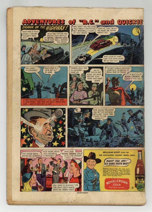 Cover by Bud Thompson. Stories by Otto Binder, Art Helfant¸ and Sid Lazarus. Art by Bud Thompson¸ Sid Lazarus, and Art Helfant. Superhero action with Freddy Freeman, who gains the same powers as his hero Captain Marvel, better known these days as Shazam. Gangsters trying to steal precious radium wind up with an atom bomb instead, and hold the city hostage. Dick Tracy-like criminals Lipstick, Haircut and Coughdrop plot to rob an upscale beauty shop where the rich get their 'dos done. The Atom Bomb on the Loose; Rubbernose Randolph; Boxcar Benny; The Jewels of Jeopardy!; Captain Marvel, Jr. Jars a Joker; It Looked Like Suicide; Kanvasback: The Homey Touch; Snortville Sneeze: Sensational Rescue; Captain Marvel, Jr. Gets a Haircut. 48 pages, Full Color. Cover price $0.10. Grade: PR 0.5 explanation of grade Condition: Used (collectible)