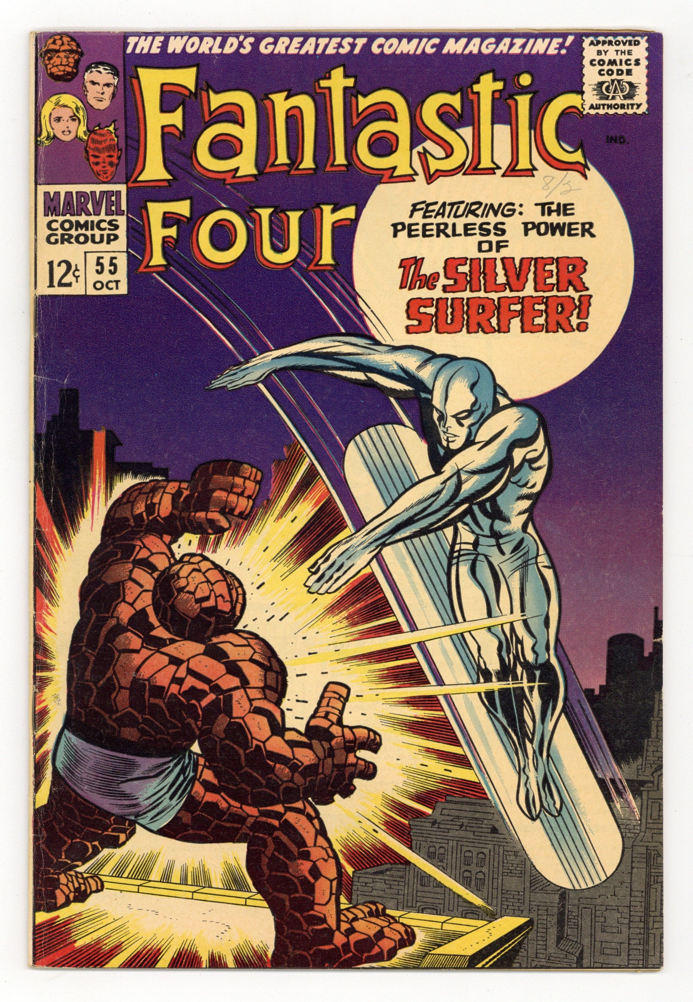 Cover pencils by Jack Kirby, inks by Joe Sinnott. Fourth appearance of the Silver Surfer in "When Strikes the Silver Surfer!", script by Stan Lee, pencils by Jack Kirby, inks by Joe Sinnott; Filled with jealousy, Ben attacks the Silver Surfer. Lockjaw (of the Inhumans) appearance. 36 pgs. $0.12. Cover price $0.12. Grade: VG/FN 5.0 explanation of grade Condition: Used (collectible)