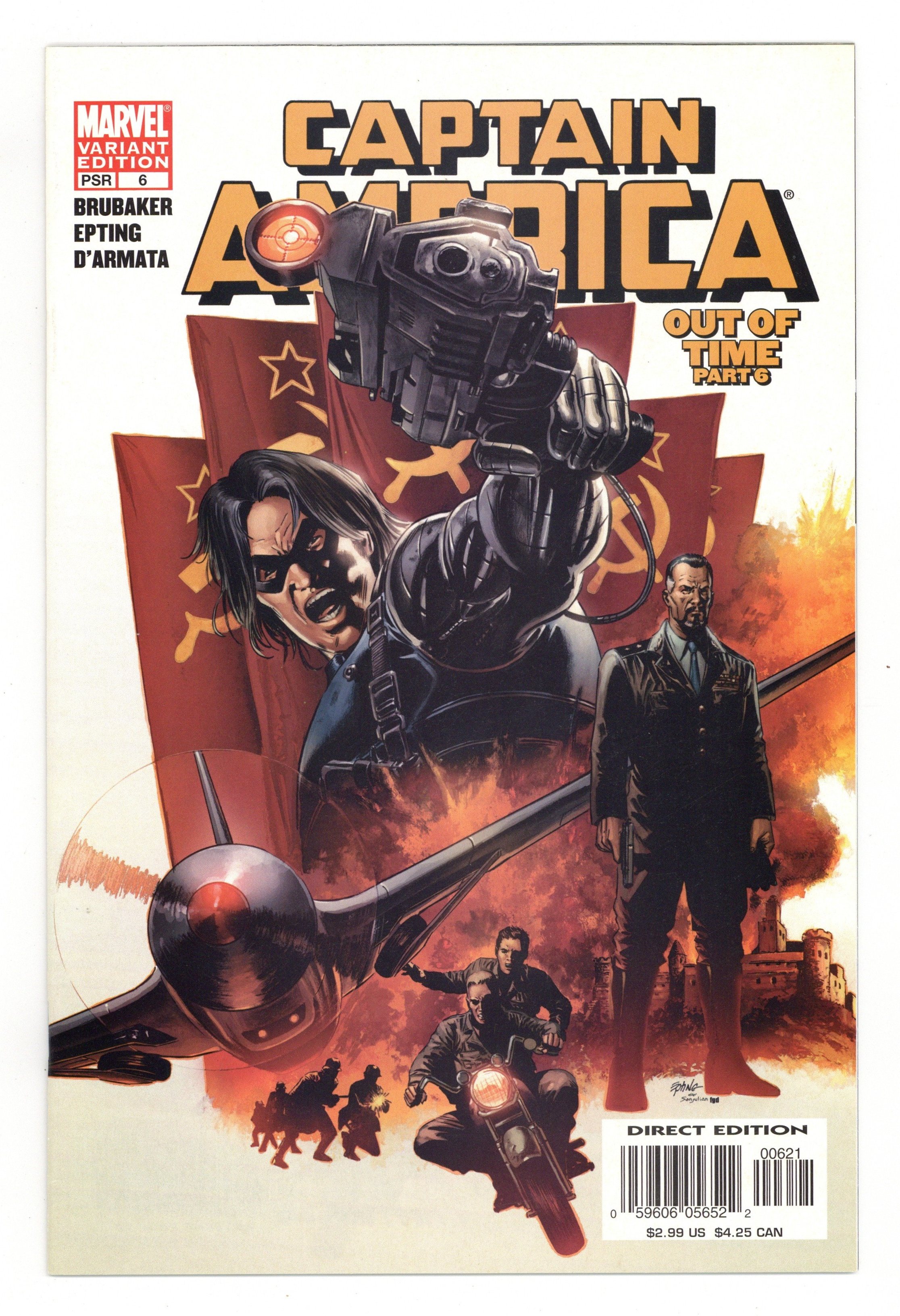 1st Full App. of Winter Soldier. Winter Soldier Cover - Winter Soldier: Part 1.6 - Out of Time: Part 6 of 6 - Written by Ed Brubaker. Pencils & Cover by Steve Epting. "OUT OF TIME" Finale Who killed the Red Skull? Who is the mystery assassin we have yet to see? This issue answers those questions and more! The hunt for the killer of the Red Skull takes a bizarre turn and Steve Rogers' life turns with it. Shattered fragments of Cap's past are called into question by new memories that keep flooding his mind. Is someone playing mind games with him, or has he been in the dark about certain events for years? Only a trip to the scene of his most devastating failure will answer that question. Part 6 (of 6). 32 PGS./Marvel PSR ...$2.99 Cover price $2.99. Grade: NM- 9.2 explanation of grade Condition: Used (collectible)