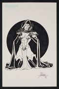 A beautiful piece from one of comics' modern masters, Perez depicts the character and a classic pinup pose- a nice nod to Mantra's existence as a male soul living in a female body who has to learn to adjust to his new reality. Signed by the artist. Pencil and ink on CrossGen comic art board. 11" x 17".
