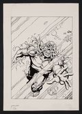 Licensing art requires iconic and instantly recognizable renditions of characters and DC legend Carmine Infantino delivers exactly that in this gorgeous Swamp Thing illustration produced for Shirt Shed. Pencil and ink on art board. 11" x 15 3/4".