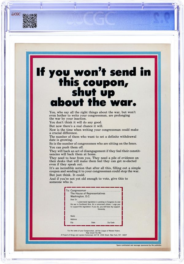 Stories in this issue include: "Shadow of Dracula" (the only new story in this issue of reprints); "To Kill a God"; "Two Silver Bullets"; "Fate's Cold Finger"; "Jack the Ripper Strikes Again"; "The Survivor"; "The Soft Sweet Lips of Hell"; and "The Silver Thief and the Pharoah's Daughter." Written by Don Glut, Douglas Moench, Denny O'Neil, Buddy Saunders (owner of Lone Star Comics!), Wallace Wood, and others. Art by Neal Adams, Ernie Colon, Reed Crandall, Steve Englehart, Jose Gonzales, Wallace Wood, and others. Includes a very informative article called "Everything you Always Wanted to Know about Vampirella but Nobody ever Told you." Cover art by Jose Gonzalez. Cover price $1.00. Grade: CGC 9.2 explanation of grade Condition: Used (collectible)