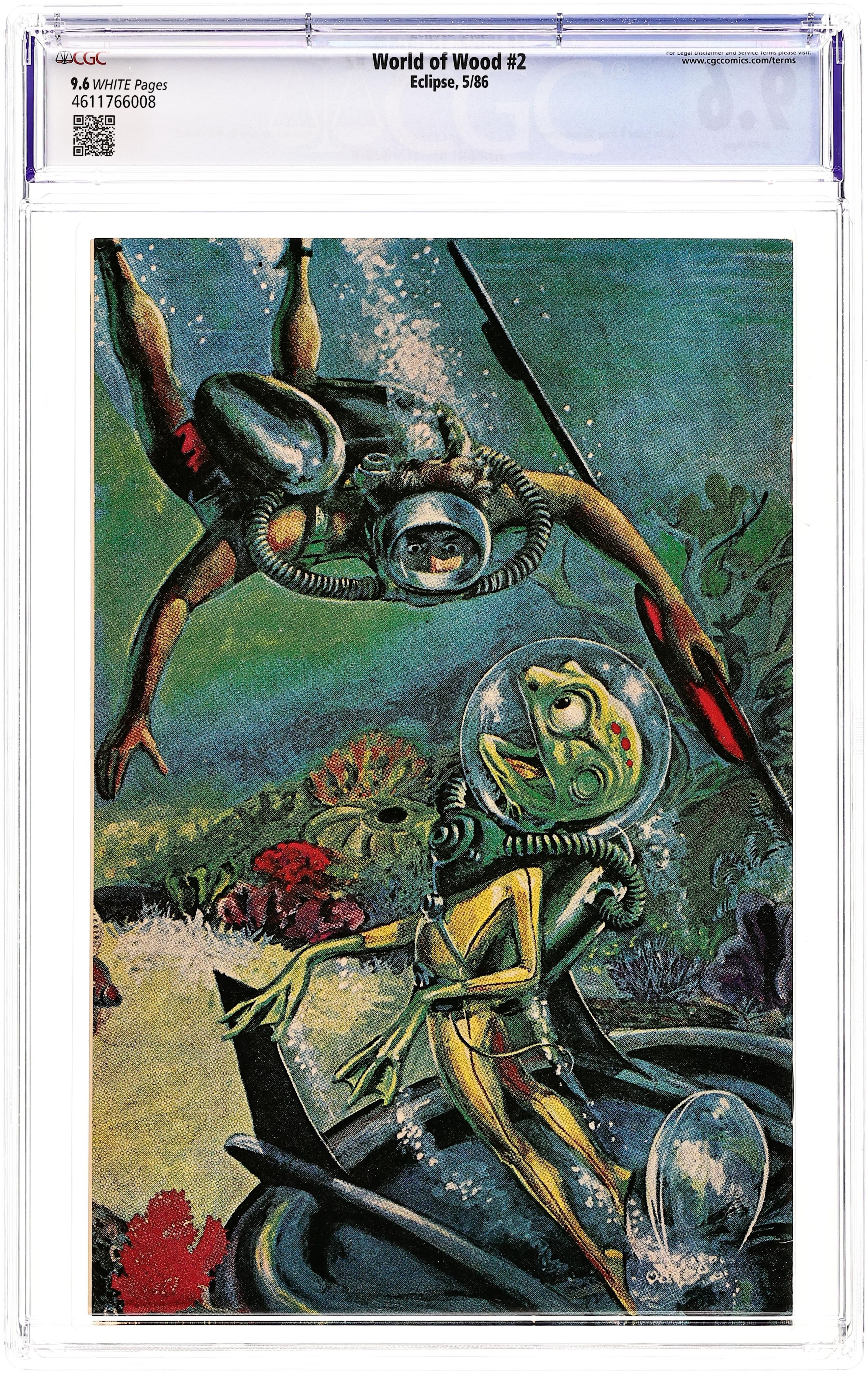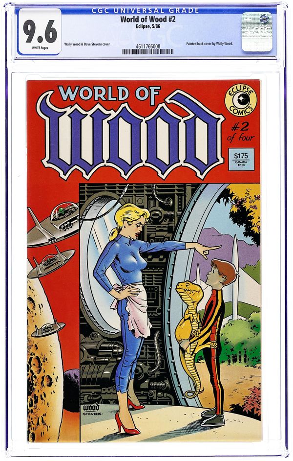 Cover pencils by Wally Wood, inks by Dave Stevens. Text page about Wally Wood and what he meant to Cat Yronwode. The End, script and art by Wallace Wood. The Cosmic All, script and art by Wallace Wood. War of the Wizards, script and art by Wallace Wood. Pinup by Wallace Wood. 36 pgs. $1.75. Cover price $1.75. Grade: CGC 9.6 explanation of grade Condition: Used (collectible)