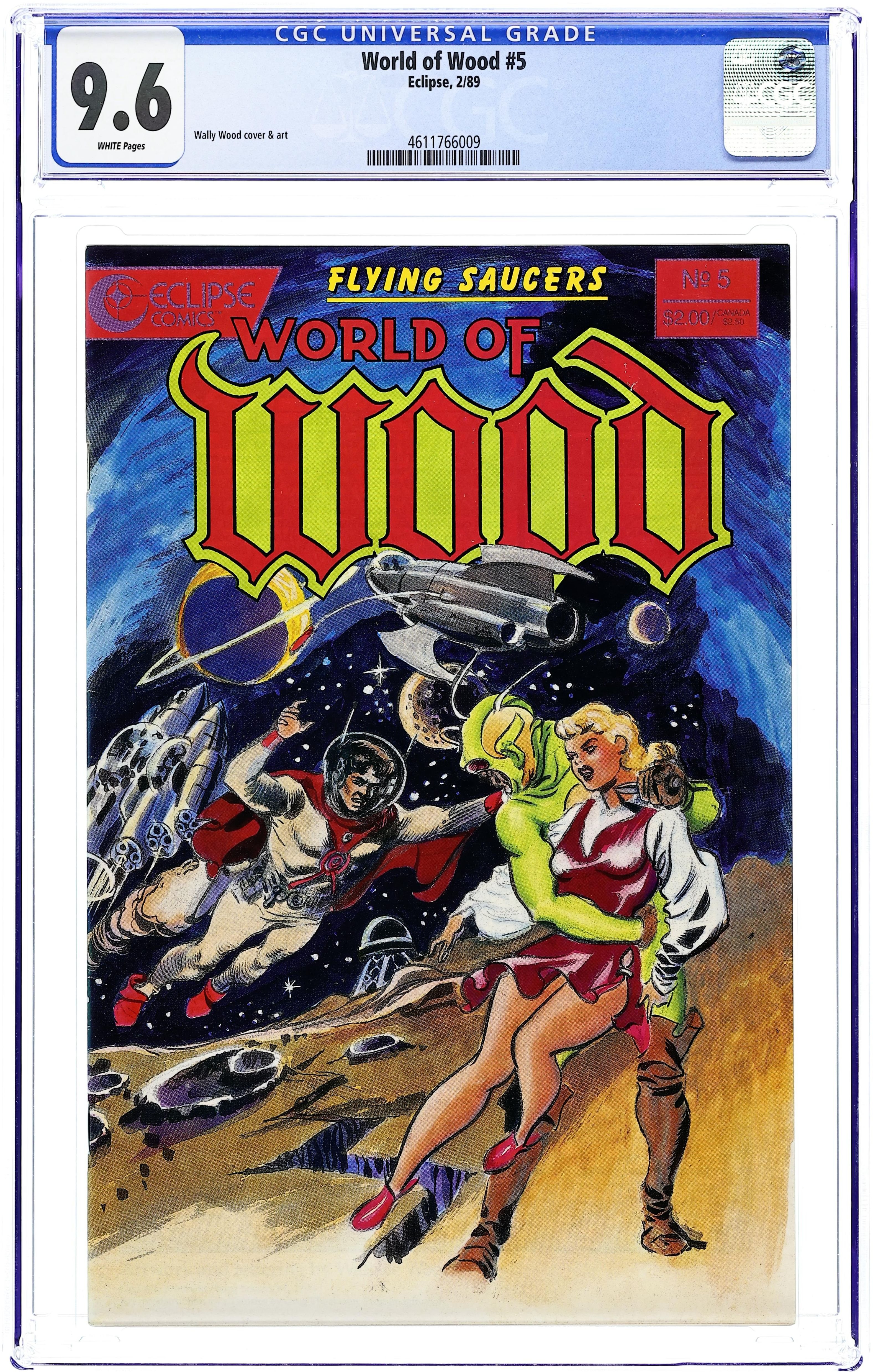 Painted cover art by Wally Wood. The Flying Saucers Spawn of Terror, pencils by Wallace Wood, inks by Wallace Wood and Greg Theakston (art reconstruction). The Flying Saucers Part Two - First Contact. The Flying Saucers Part Two - Final Objective. Skull of the Sorcerer, script by Gerry Boudreau, pencils by Al Williamson, inks by Al Williamson and Wallace Wood. 36 pgs. $1.75. Cover price $2.00. Grade: CGC 9.6 explanation of grade Condition: Used (collectible)