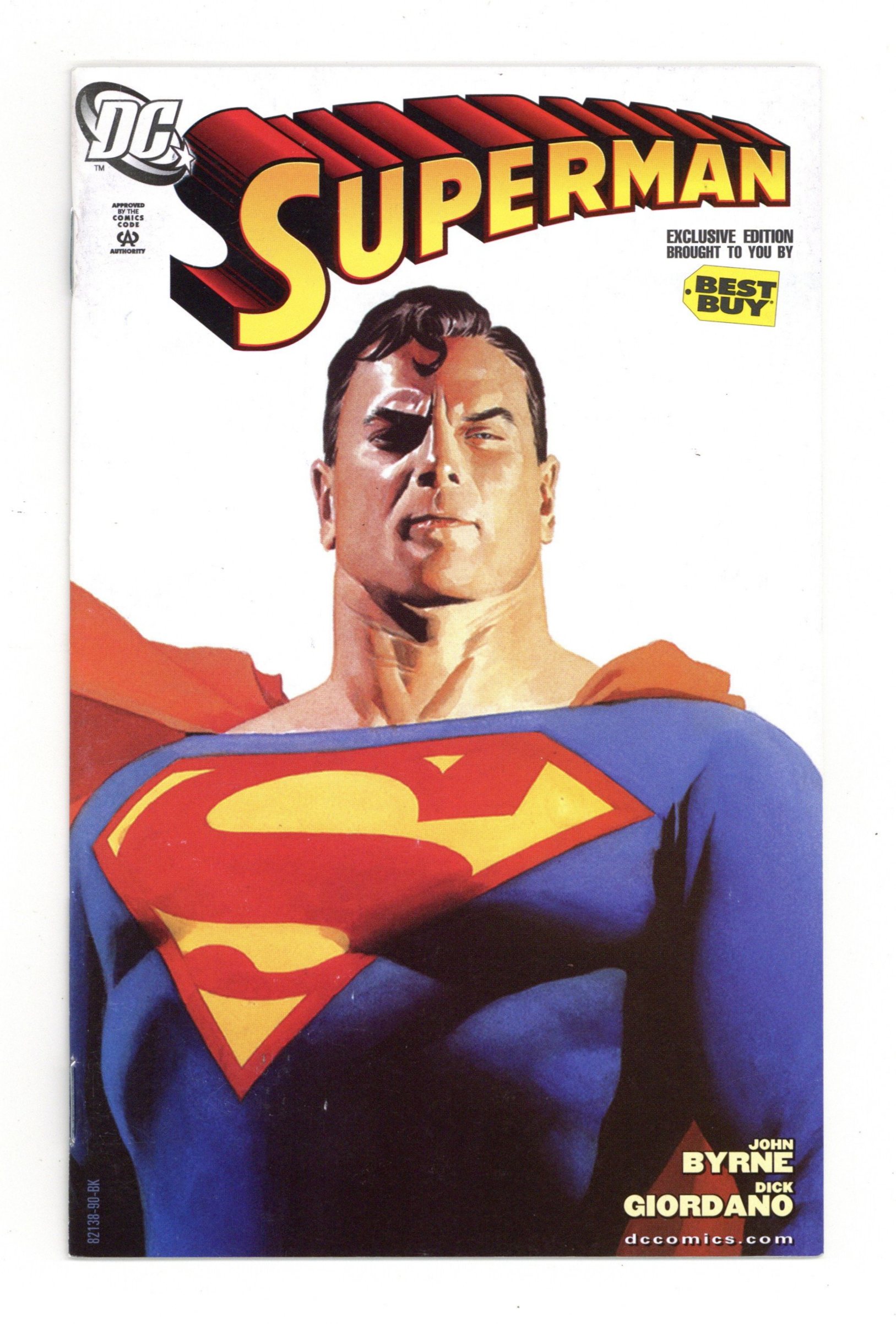 Alex Ross White Cover. Best Buy Exclusive Superman Mini Comic Book On Pack with any of the DVD sets:; Look, Up In The Sky: The Amazing Story of Superman; Superman: The Animated Series: Volume III; Superboy: Season 1; The Adventures of Superman: Seasons 3 & 4; Justice League: Season 2; Lois & Clark: New Adventures of Superman : Season 3. Reprints Man of Steel (1986) #1. Written by John Byrne. Art by John Byrne and Dick Giordano. Published just a few months after Crisis on Infinite Earths, John Byrne's The Man of Steel updated the saga of Superman for modern audiences. His origin was altered, as were many other aspects of the character. This first issue reveals that Kal-El was conceived via the mingling of seeds in a matrix chamber, Clark's powers developed slowly over time (meaning Superboy was written out of continuity), and Superman's body projected an aura that protected his now vulnerable costume. 24 pages, full color. Grade: VF 8.0 explanation of grade Condition: Used (collectible)