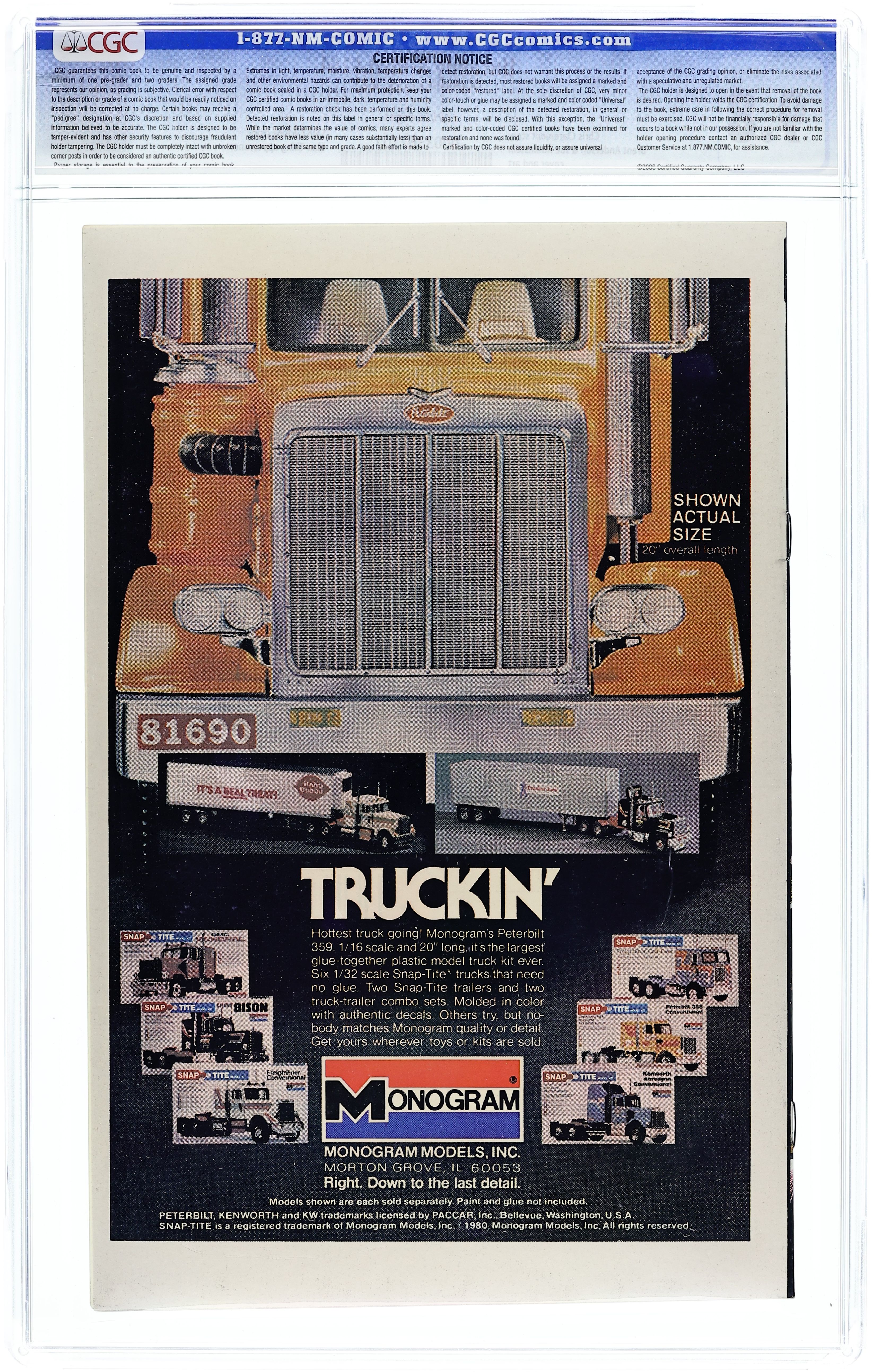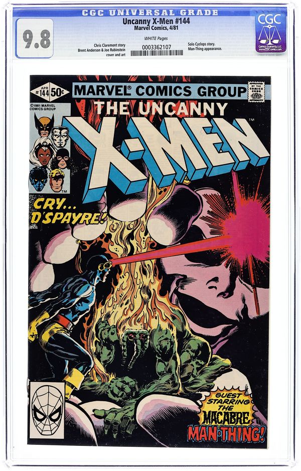 Direct Edition. "Even in Death!" Guest-starring the Man-Thing. Story by Chris Claremont. Art by Brent Anderson and Joe Rubinstein. Cyclops faces his fears in this macabre tale featuring the Man-Thing and the sinister D'Spayre. 36 pgs. Cover price $0.50. Grade: CGC 9.8 explanation of grade Condition: Used (collectible)