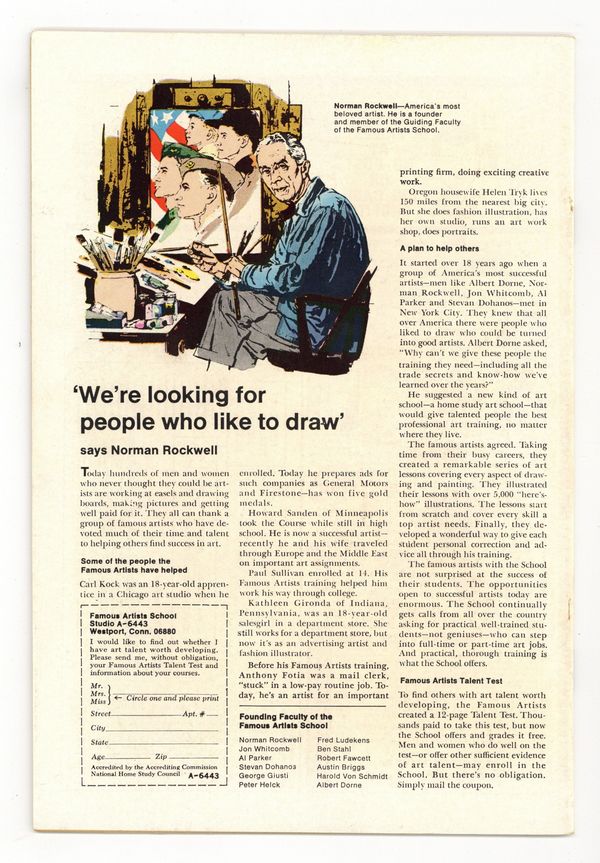 Starts Dec 8 Cover pencils by Marie Severin and John Romita (alterations), inks by Frank Giacoia and John Romita (alterations). "The Fearful Secret of Bucky Barnes!", script by Stan Lee, pencils by Gene Colan, inks by Dick Ayers; Captain America and the public at large believe Bucky Barnes has returned; It is revealed that Modok had Dr. Doom create a robot duplicate of Bucky; Modok makes Bucky attack Captain America. But the robot is unable to kill Cap leading Modok to destroy it. Walter Cronkite cameo. Brief appearances by the Falcon, Nick Fury, and Sharon Carter. 36 pgs., full color. $0.15. Cover price $0.15. Grade: VF- 7.5 explanation of grade Condition: Used (collectible)