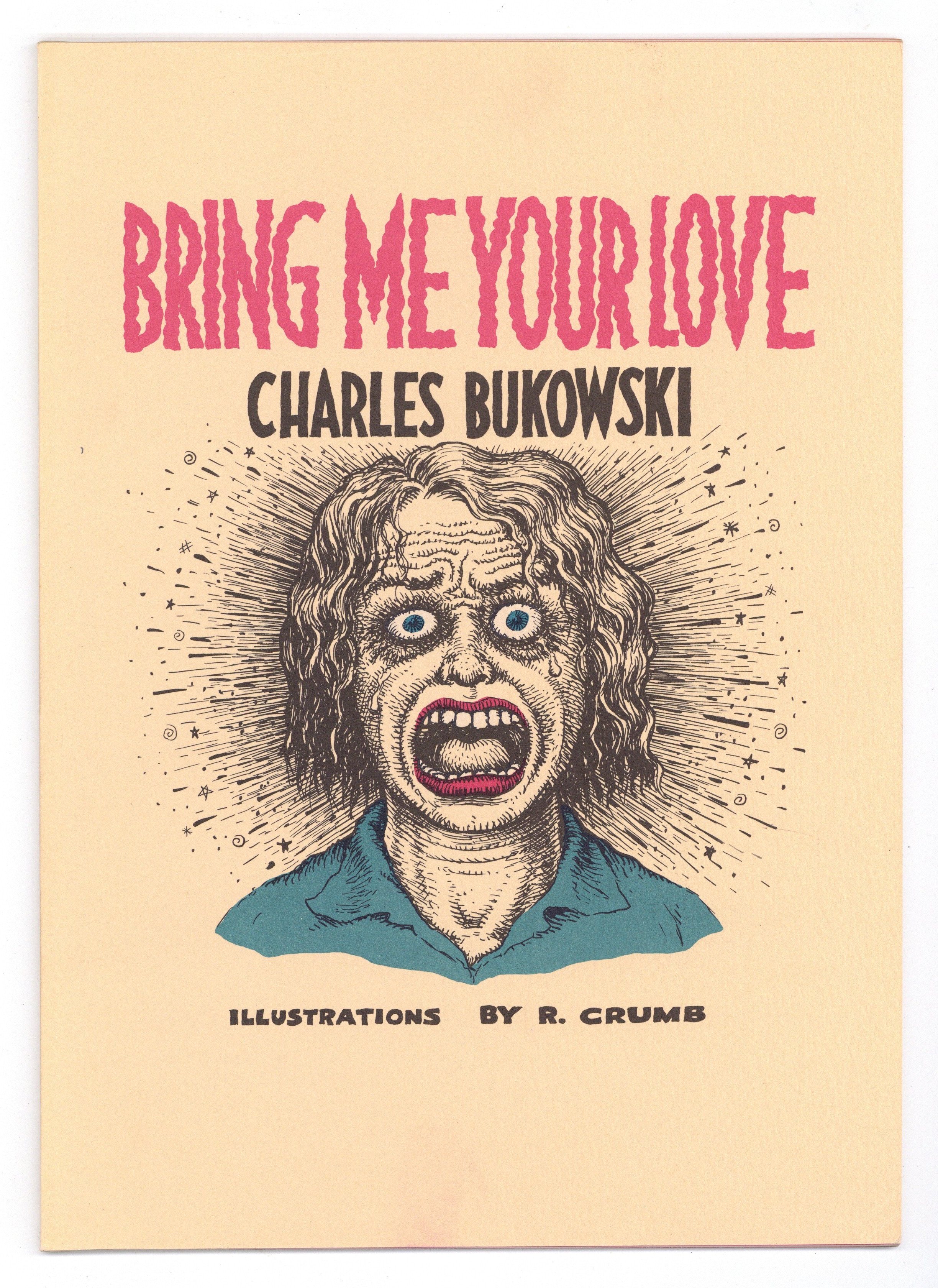 Featuring interior and cover illustrations by Robert Crumb, this large-format chapbook features Charles Bukowski's usual blend of madhouses, women, sex, booze and not much hope at all. Bring Me Your Love follows the torrid tale of Harry Weaver as he visits his wife/girlfriend Gloria at a hospital where she is recuperating from an unspecified illness, who accuses Harry of infidelity.