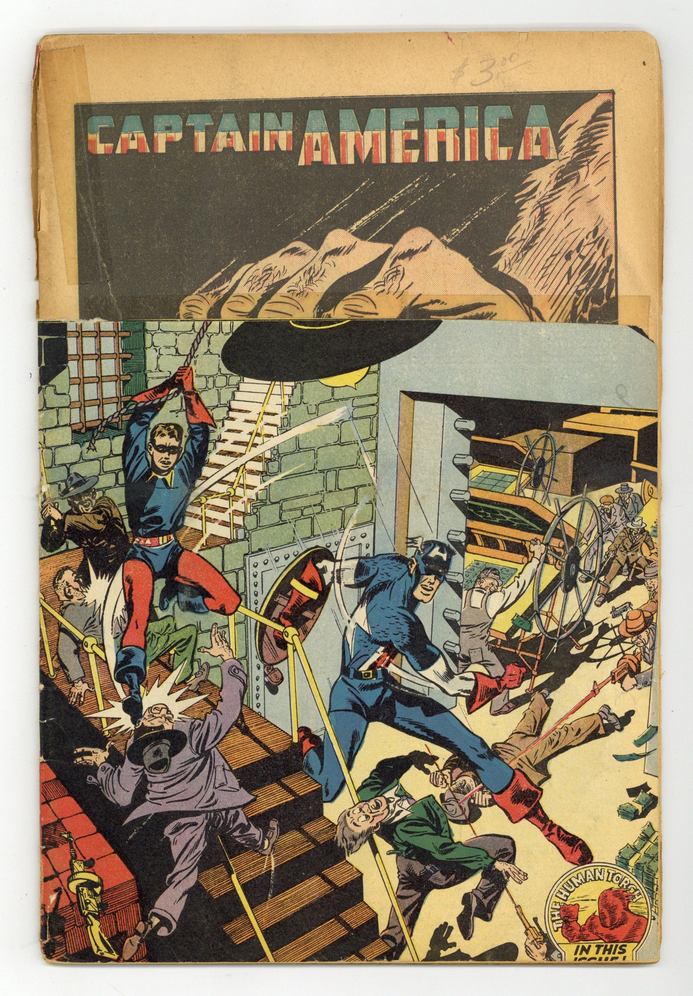 April 1946, Stories: Captain America in "The hands of Sensitivo," 13 pages; Captain America in "Just What the Doctor Ordered," 12 pages; "House of Mystery" 2 pages text story; The Human Torch in "The Rest Home Mystery," 7 pages; Captain America in "The Merry Widow Murders," 52 pages. Cover price $0.10. Grade: FR 1.0 explanation of grade Condition: Used (collectible)