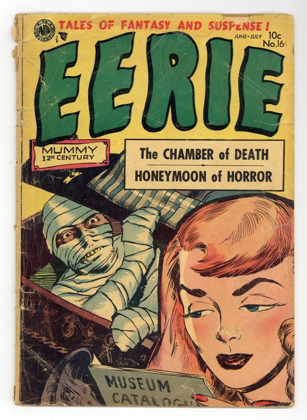 Art by Louis Ravelli, Rocke Mastroserio, Henry C. Kiefer, Manny Stallman, Joe Orlando and Wally Wood. Tales of horror from the era just before the Comics Code was introduced. This issue is a reprint of issue #2 with a new cover. A drowned corpse pursues his killer back to New York; A newlywed groom makes a deal with the devil to be reunited with his dead bride; A prediction of death turns into a self-fulfilling prophecy. The Thing from the Sea!; A Honeymoon of Horror!; The Chamber of Death!; The Stranger in Studio X; Nightmare! 36 pages, Full Color. Cover price $0.10. Grade: PR 0.5 explanation of grade Condition: Used (collectible)