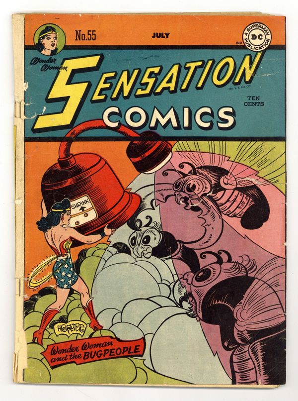 Cover art by Harry G. Peter. The Bughuman Plague starring Wonder Woman, script by William Moulton Marston, Joyce Murchison [as Charles Moulton], art by Harry G. Peter. Accent On Action starring Little Boy Blue, art by Frank Harry. The Sargon Swing starring Sargon the Sorceror, script by John Wentworth, art by Dennis Neville. Mr. Terrific story, art by Stan Aschmeier [as Stan Josephs]. Crime Before the Camera starring Wildcat, art by Paul Reinman. 52 pgs. $0.10. Cover price $0.10. Grade: FR/GD 1.5 explanation of grade Condition: Used (collectible)