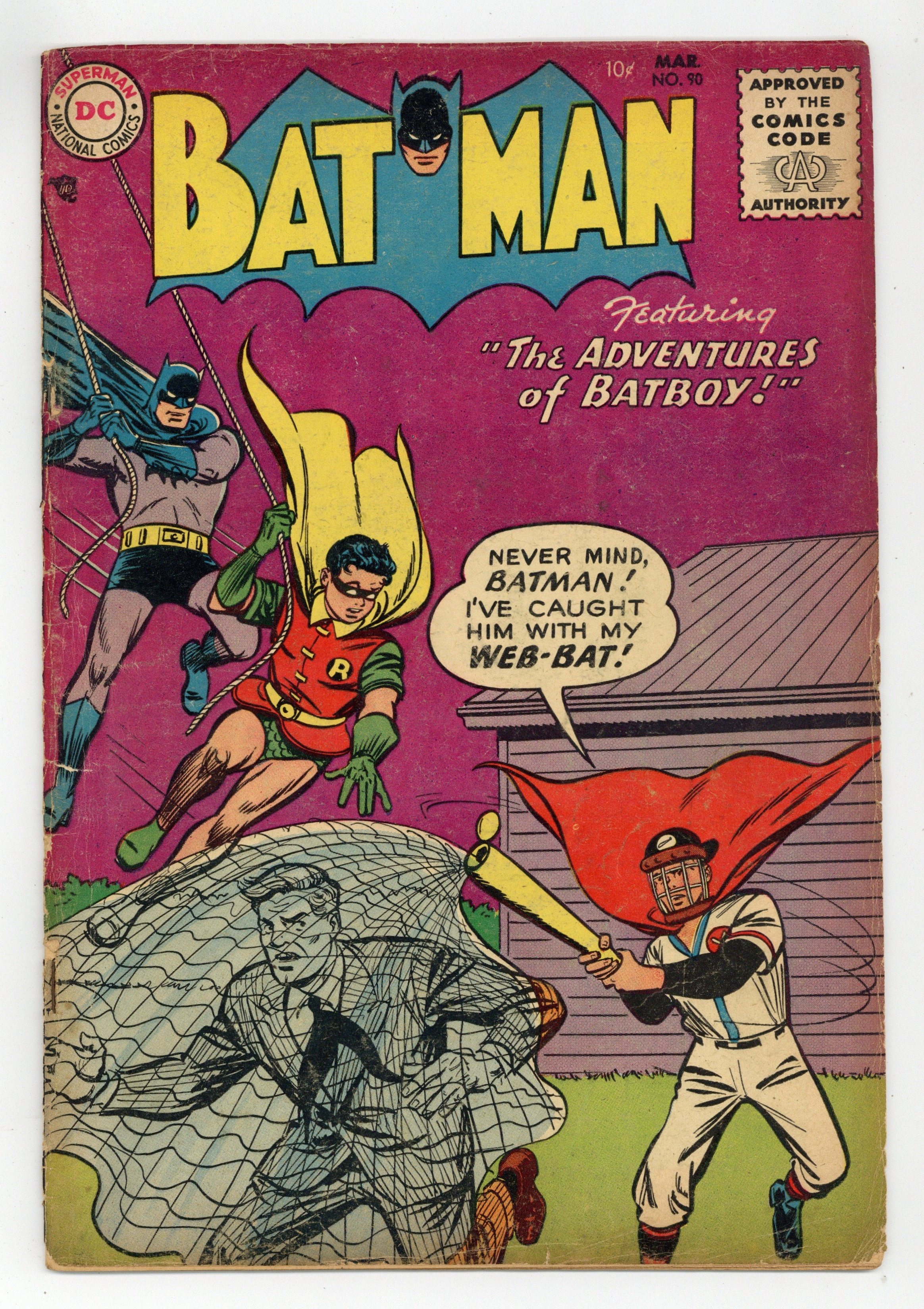 Cover by Win Mortimer. "The Web of Doom!", script by Bill Finger, pencils by Sheldon Moldoff, inks by Charles Paris; Dr. Peter Driscoll suffers from amnesia and cannot remember where he dropped a parcel with deadly microbes; Batman and Robin hopes to jog his memory by confronting him with three prisoners who served as his test subjects during the microbe research. One-page Casey the Cop story by Henry Boltinoff. "City of Fantasy!", script by Bill Finger, art by Dick Sprang; Dr. Frank Bolton has invented an "illusion ray," but his assistant Parker steals it and partners up with gangsters in order to distort people's vision and commit crimes; At first, Batman and Robin are helpless, until they learn to rely on hearing and radar instead of vision. One-page Professor Eureka story by Henry Boltinoff. Scientists With Badges article by John Marlowe. "The Adventures of Batboy!", pencils by Sheldon Moldoff, inks by Stan Kaye; Batman and Robin vs. Tapper Nolan; Robins origin retold. Your United Nations at Work! public service announcement. 36 Pages, Full Color. Cover price $0.10. Grade: PR 0.5 explanation of grade Condition: Used (collectible)
