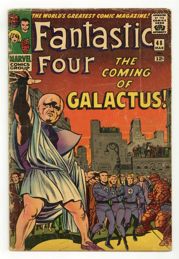Starts Jan 3 Cover pencils by Jack Kirby, inks by Joe Sinnott. First appearance of Galactus and the Silver Surfer in one of the most famous stories of the Silver Age, The Coming of Galactus!, script by Stan Lee, pencils by Jack Kirby, inks by Joe Sinnott; Black Bolt and the Fantastic Four put an end to Maximus's plan to destroy all the humans; Once the Fantastic Four return to New York the Watcher tells them of the coming danger of Galactus. Letter to the editor from comics writer Don McGregor. 36 pages, full color. Cover price $0.12. Grade: GD- 1.8 explanation of grade Condition: Used (collectible)