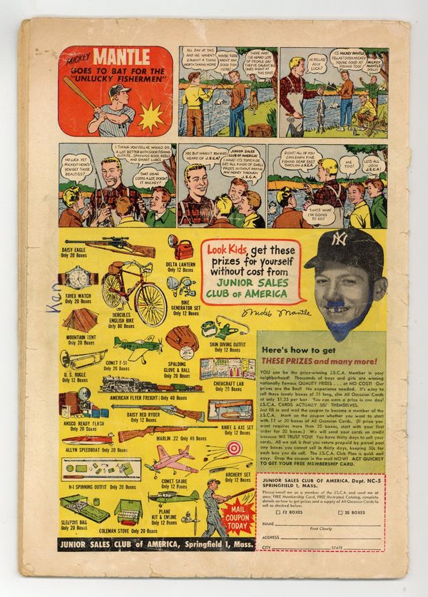 Starts Dec 8 Cover by Al Plastino. "Superman Loses His Powers," script by Jerry Coleman, pencils by Wayne Boring, inks by Stan Kaye; Exposure to ancient Atlantean experiments gives Bart Wellins super-powers and Superman can't stop him because exposure to the same experiments have increased his powers so much, he doesn't dare to use them at all. "The Jungle Journal," script by Jack Miller, art by Nick Cardy. One-page Ollie story by Henry Boltinoff. Adventures in Coin Collecting article. Supermen of America ad. One-page Lem 'n' Lime story by Henry Boltinoff. 36 Pages, Full Color. $.10 Cover price $0.10. Grade: FR/GD 1.5 explanation of grade Condition: Used (collectible)