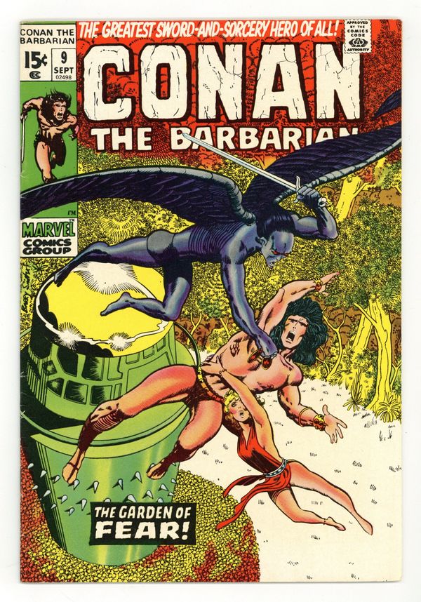 Ends Dec 8 7:55 PM CST Bid History 5 bids Current Bid $10 Your Secret Max Bid If you'd like to bid, please log in or register. Last 15-cent issue. Cover art by Barry Windsor-Smith. Last 15-cent issue. The Garden of Fear, script by Roy Thomas, pencils by Barry Windsor-Smith, inks by Sal Buscema; setting: primitive village & lost valley with Wooly Mammoths & man-eating flowers; Conan saves Jenna & kills sole survivor of ancient winged race; adapted from the non-Conan story by Robert E. Howard. 36 pgs. Cover price: $0.15. Cover price $0.15. Grade: FN 6.0 explanation of grade Condition: Used (collectible)