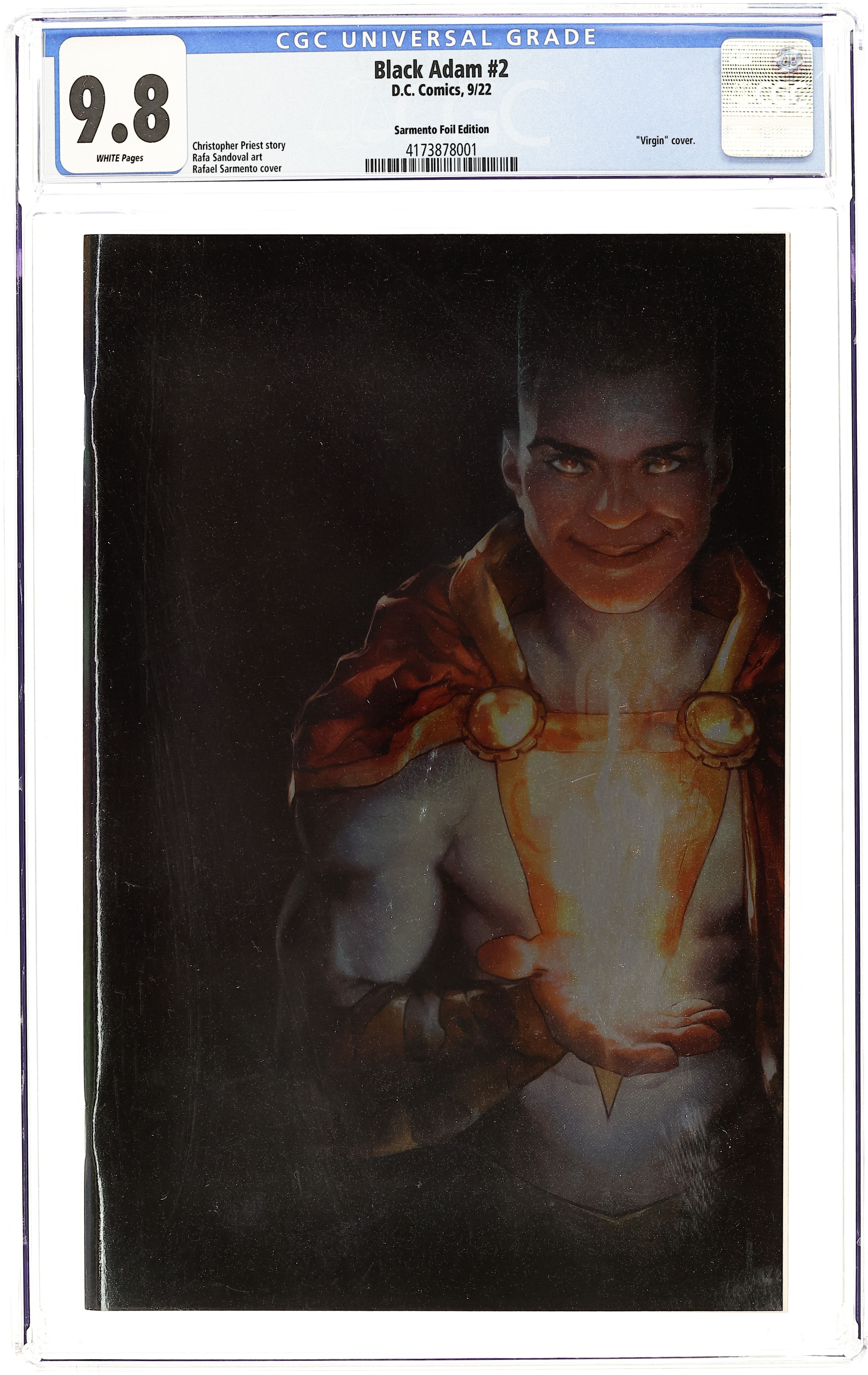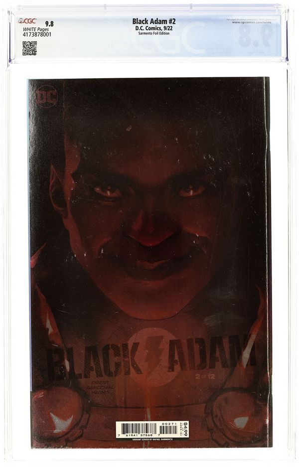 Limited 1 for 50 Retailer Incentive Variant Cover. (W) Christopher Priest (A) Rafa Sandoval (CA) Rafael Sarmento I am not a hero, Im a god. Who is Black Adam? His power and his very life draining from him, Theo Teth-Adam is confronted by a specter from his past haunting him with the treachery he employed to gain his powers and forcing him to confront an inescapable truth: there is no redemption for Black Adam. Cover price $4.99. Grade: CGC 9.8 explanation of grade Condition: Used (collectible)