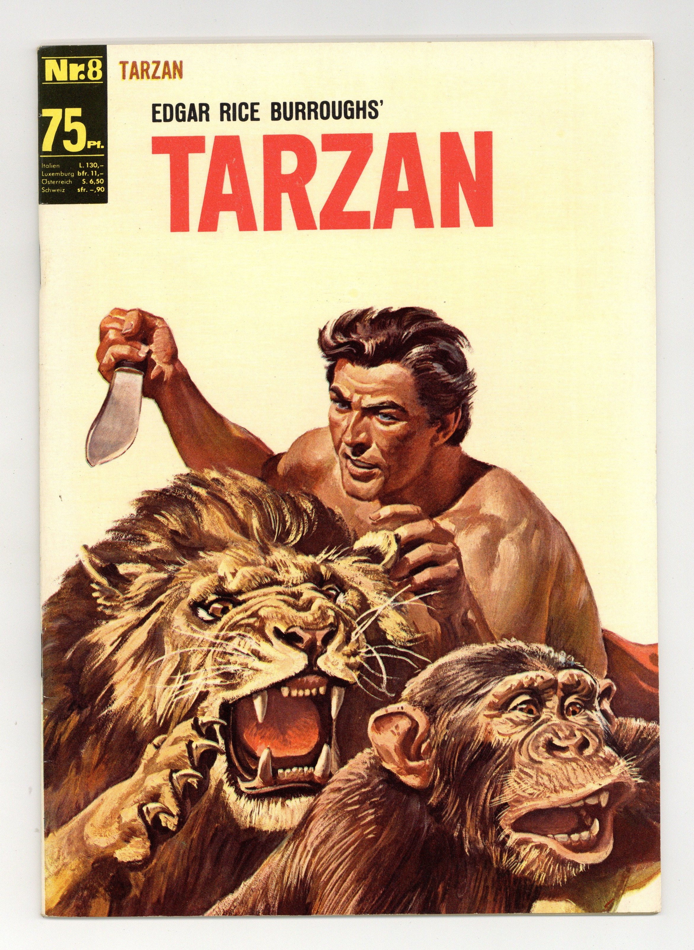 Ends Dec 8 9:38 PM CST Bid History 2 bids Current Bid $3 Your Secret Max Bid If you'd like to bid, please log in or register. German Reprint Series. Reprints Cover from Tarzan (1948-1972 Dell/Gold Key) #139. Reprints Material from Tarzan (1948-1972 Dell/Gold Key) #139, #140, and #141. 36 pages, FC. German Language. Grade: VG/FN 5.0 explanation of grade Condition: Used (collectible)