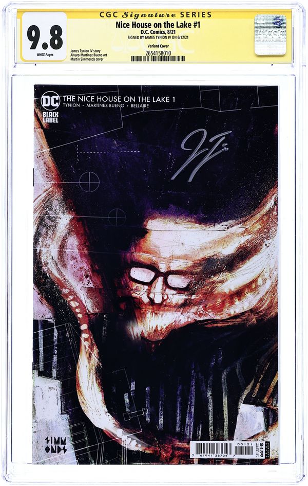 Written by James Tynion IV. Art by Alvaro Martinez Bueno. Cover by Martin Simmonds. Everyone who was invited to the house knows Walter—well, they know him a little, anyway. Some met him in childhood; some met him months ago. And Walters always been a little…off. But after the hardest year of their lives, nobody was going to turn down Walters invitation to an astonishingly beautiful house in the woods, overlooking an enormous sylvan lake. Its beautiful, its opulent, its private—so a week of putting up with Walters weird little schemes and nicknames in exchange for the vacation of a lifetime? Why not? All of them were at that moment in their lives when they could feel themselves pulling away from their other friends; wouldnt a chance to reconnect be…nice? With Something Is Killing The Children and The Department of Truth, James Tynion IV has changed the face of horror in modern comics — now get ready for his most ambitious story yet, alongside his Detective Comics partner Álvaro Martínez Bueno! 32 pages, full color. Mature Readers Cover price $4.99. Grade: CGC 9.8 explanation of grade Condition: Used (collectible)